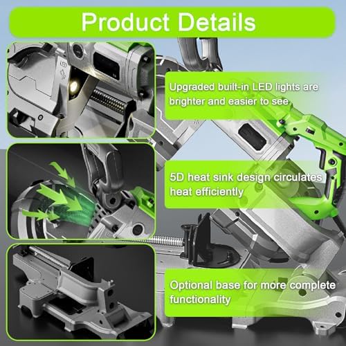 Introducing the 1100W Cold Cut Band Saw, engineered for metal workers and contractors seeking exceptional industrial-grade performance with the convenience of portability. This versatile band saw features a detachable alloy steel base with integrated wheels, ensuring stable benchtop mounting and precise angle cuts from 0° to 45°. Its foldable design enhances mobility while conserving valuable workspace, making it a perfect fit for various job sites. **Key Features:** - **Enhanced Safety:** The dual switch mechanism, including a locking switch, reduces the risk of accidental starts. - **Illumination:** An integrated LED work light provides bright visibility, allowing for accurate cutting even in dim environments. - **Adjustable Speed:** The stepless adjustment knob lets users customize the cutting speed from 0.8m/s to 2.4m/s, catering to different materials and project specifications. - **Precision Cutting:** Scale lines on the base enable accurate bevel cuts, and the angle adjustment screw simplifies achieving precise cuts at 0°, 45°, and 90°. - **Generous Cutting Capacity:** With a cutting diameter of 12cm (4.72 inches), this band saw efficiently handles both round and angular materials. - **Efficient Heat Dissipation:** The innovative 5D heat dissipation port design promotes optimal performance during extended use. - **Transport-Friendly:** The detachable aluminum alloy base with pulleys makes it easy to transport between job sites. - **Compact Storage:** The foldable design allows for convenient storage when not in use. **Specifications:** *Without Base:* - Band Saw Speed: 0.8-2.4 m/s - Weight: 7KG - Rated Power: 1100W - Cutting Range: Angular material 12*12 cm (4.72*4.72 in), Round material 12 cm (4.72 in) *With Base:* - Band Saw Speed: 0.8-2.4 m/s - Total Weight: 13.6 kg - Rated Power: 1100W - Cutting Range: Round material 11 cm (4.33 in), Angular material 10.5*10.5 cm (4.13 in) **Saw Blade Size:** - Length: 114.1 cm (44.92 in) - Width: 1.3 cm (0.51 ...