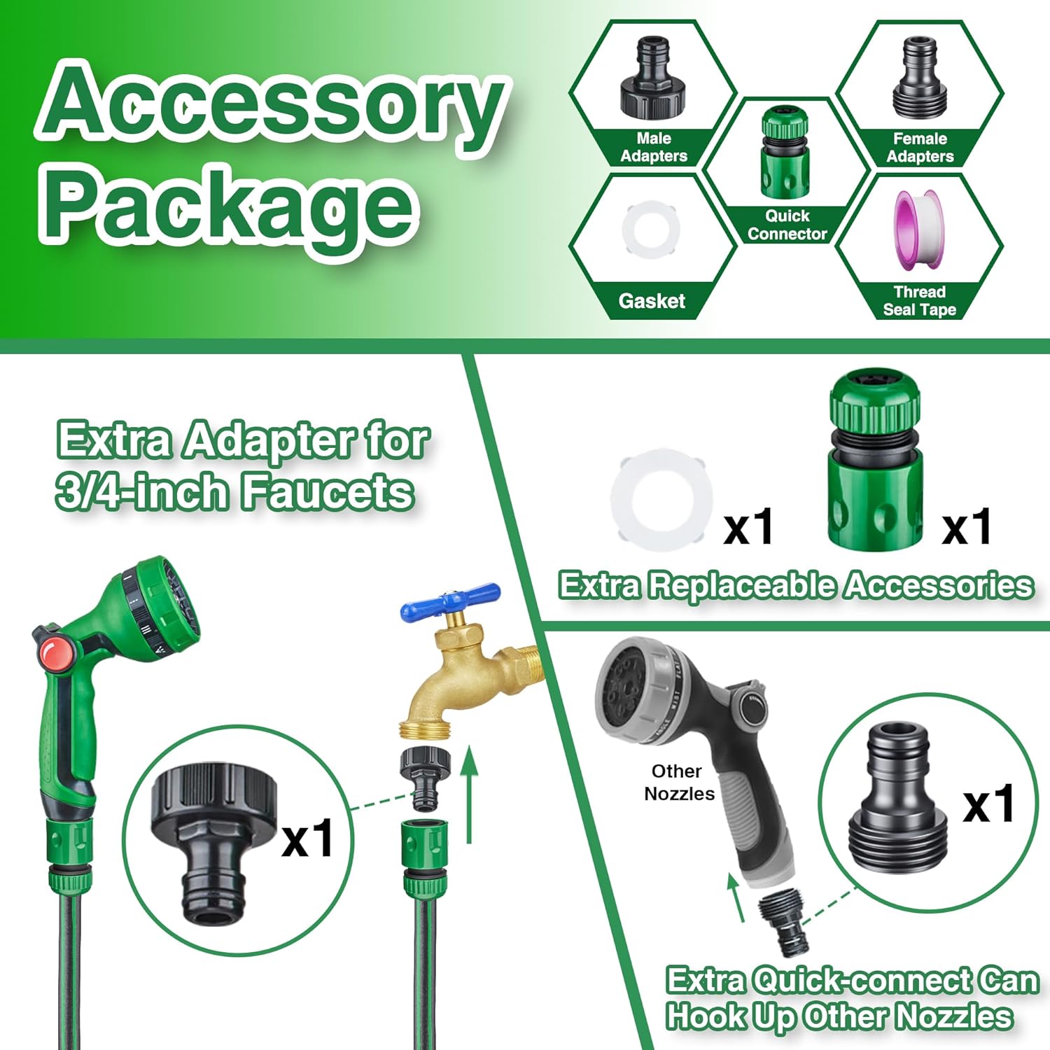 | Included Components | 1/2" quick connectors×3 PCS, 10 Patterns Spray Nozzle×1 PCS, 3/4" threaded nipple×2 PCS;3/4" washer×1 PCS, PTFE tape×1 PCS, spare nipple×1 PCS |