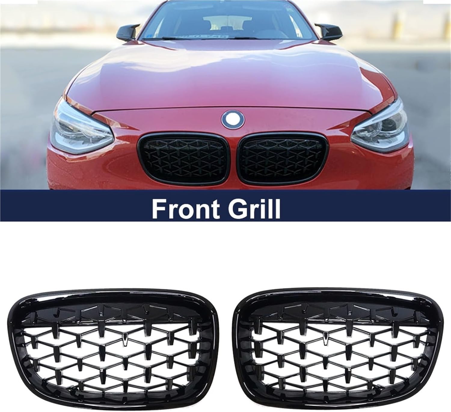 • 2PCS ABS Diamond Grill Front Bumper Kidney Grilles Compatible With BMW 1 Series F20 F21 116i 118i 2011 2012 2013 2014 Replacement Grille