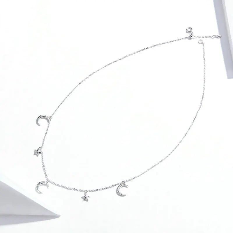 925 Sterling Silver Simple Star Moon Pendant - Silver Necklace for Women S925Fine JewelryItem Weight: 3 gMetal Stamp: 925,SterlingMetals Type: silverMain Stone: ZirconMaterial: 925 Sterling Silver + Platinum Plated + ZirconChain Type: Link ChainShape\pattern: FlowerModel Number: GXN411Necklace Type: Pendant NecklacesItem Type: NecklacesChain length: 46cm(Adjustable)