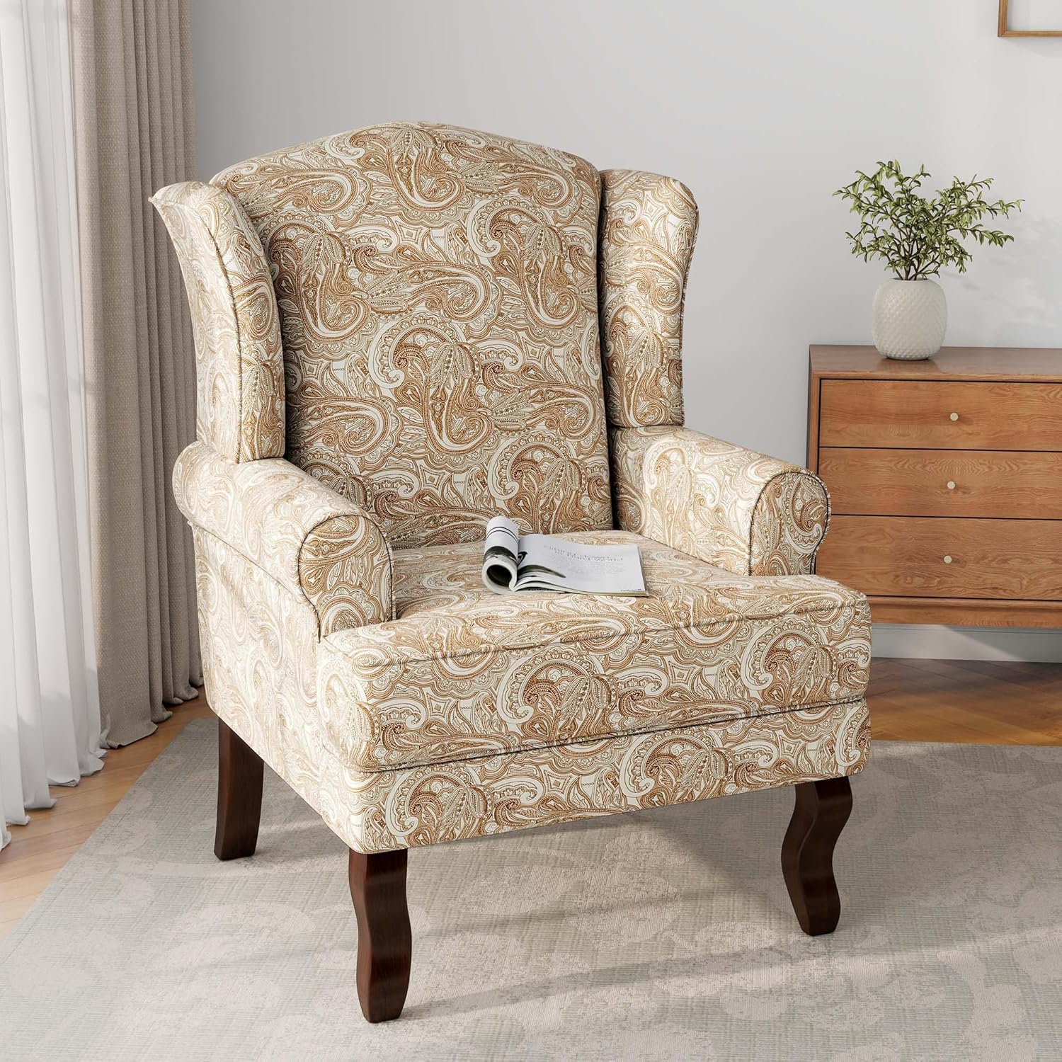 Accent Chair, Upholstered Armchair with Button Tufted High Back & Solid Wood Legs, Comfy Wingback Reading Single Sofa Chair for Small Spaces, Living Room, Bedroom (Blue, Set of 1)