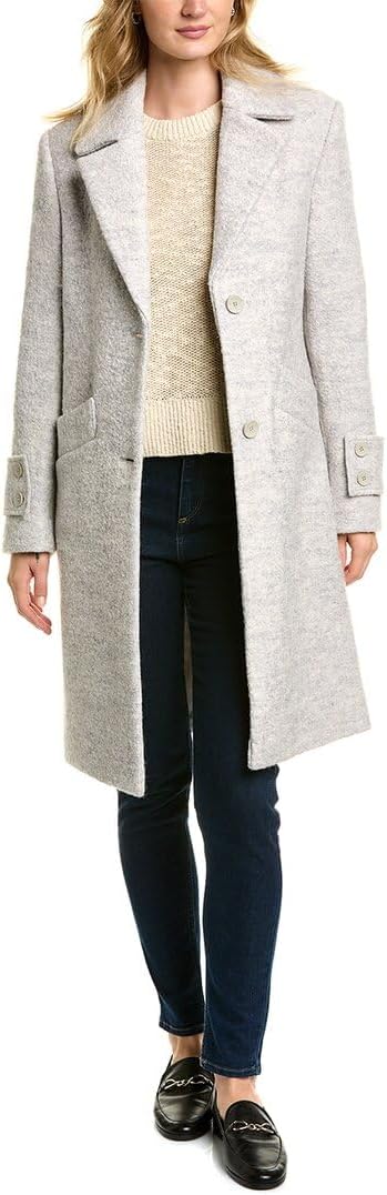 This ANDREW MARC womens textured pressed wool boucle is a classic single breasted and slighly tailored body with notch collar detail