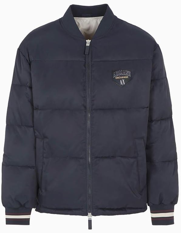 A|X Armani Exchange Men's Collegiate capsule, nylon bomber jacket. Padded look with patch logo on top left corner.