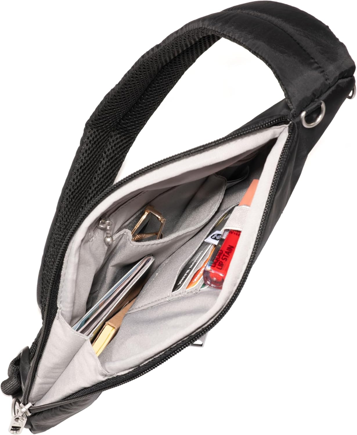 | Item Type Name | Baggallini Securtex Anti-theft Half Moon Sling Bag 8"x13" Crossbody Bags w/ RFID, Cut-resistant Strap, Locking Zippers |