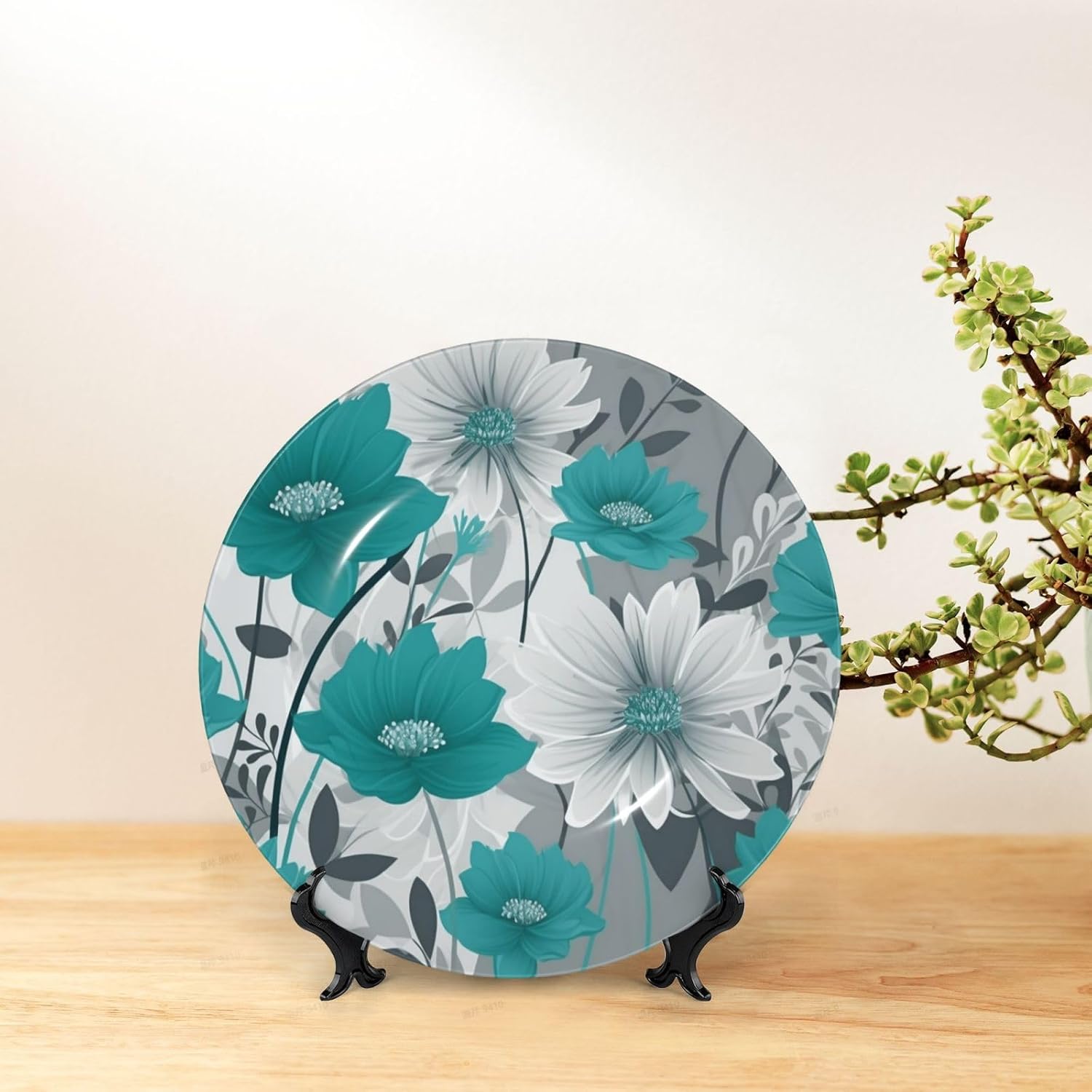 gokays decorative platedo you feel that your table is monotonous? Then use our decorative plate to add a little fun to the monotony of life.featuressize - 6 inch diameter;7 inch diameter;8 inch diameter;10 inch diametermaterial - ceramic design - Teal Grey and White Floral package - 1 x ceramic decorative plate, 1 x stand, 1 x pothookwhy choose gokays decorative plates?advantageas manufacturers we follow current trends and bring you the latest home fashion. Salad plates ideal for placement at home or in the office. Traditional porcelain making technology, fine workmanship. Ceramic dinner plates is a good gift for family and friends.convenient to useour dinner plates rack for display has 2 ways to use, you can just place the bracket base on a flat surface first, and then put the plate on it, also you can stick the provided pothook at the back of the plate, and then stick the plate on the wall, you can choose the suitable installation method according to the actual situation.occasionour ceramic ornaments salad plates is a perfect decorative and collection for any niche, table, or mantle at your home. Perfect for your office, home, living room, dining room, playroom, kitchen, cafe, study, studio, club, bar, and others.in a surprise for your family and friends!porcelain dessert plates is a perfect gift for any person in your life. You can give it directly to your lover as mother's day gift/father's day gift/birthday gift/christmas gift/valentines day gift/anniversary gift/wedding gift/housewarming gift/new home gift.start with our funny decorative plate, refresh your rooms!