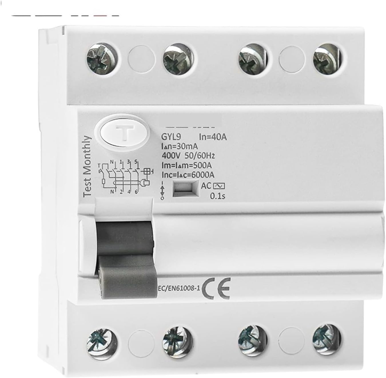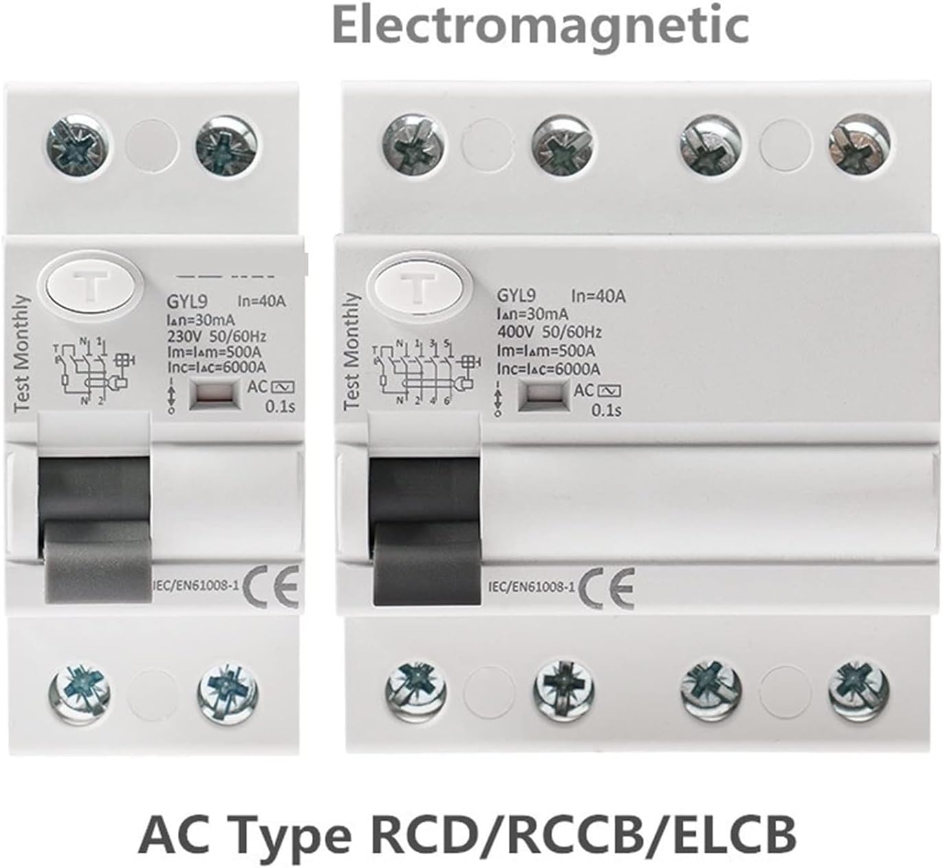 Circuit breakerThermal Circuit BreakersMagnetic Circuit BreakersGYL9 AC Residual Current Circuit Breaker Electromagnetic Differential Breaker Switch 4P 40A 63A 100A 1Pcs***It is AC type RCCB 4P 25A 40A 63A 80A 100A 30mA/100mA/300mA***GYL9 earth leakage circuit breaker is suitable to the circuit of AC 50/60Hz.rated voltage 230V for 2 poles and 400V for 4 poles and rated current up to 100A.when people come across the electric shock or the leakage current of the electrical network exceeds the fixed value this product can cut off the fault current in short period so as to person and the equipments It also can be used in the infrequent starting of the circuit and motors. The circuit breaker is suitable to industry commerce high-rise building household and other kinds of places.In complicance with IEC/EN61008-1. Bilateral busbar wiring capabilities to adapt to the wider use of premises.Maximum connecting ability of 35mm wiring torque 3.5N*m applicable to a variety of installing equipment.
