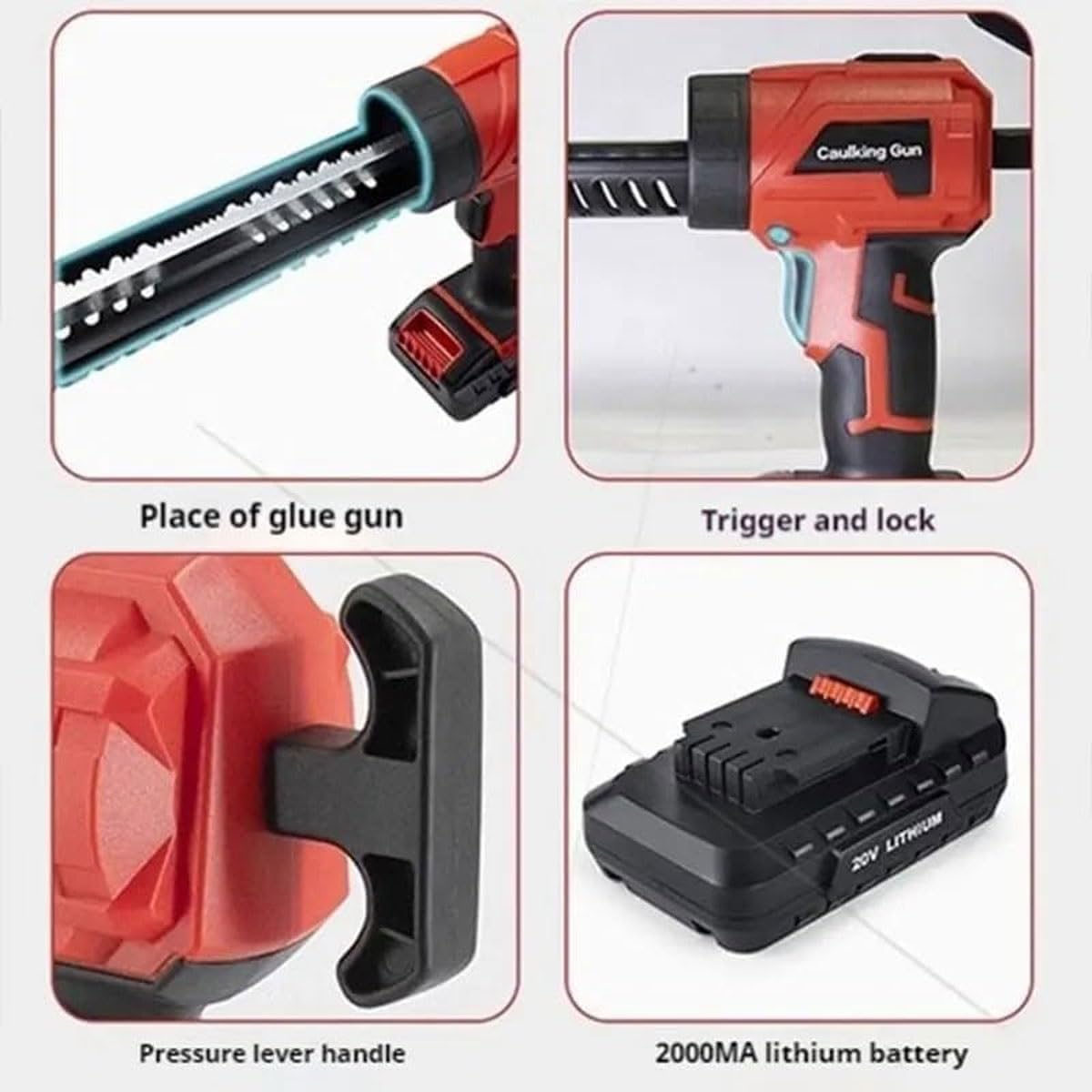Features:Efficient heat dissipation, effectively prevent burn-inAutomatically remove glue to avoid waste, release the switch after the lever is automatically removed to prevent waste glue from leakingHandle is made of ergonomic abs plastic for long-term comfortWidely used in balcony doors and windows, bathtubs, air conditioning holes. Ideal for caulking, filling, sealing and insulating small gapsSpecificationsName: Glass glue caulking gunMaterial: PlasticCharger: 21.5V 1.5AWorking pressure: 280kgsWorking current: 1AGlue rate: 4-settingScope of application: glass glue, seam glue, sealantPackage Included1*Glass glue caulking gun2*ChargerNote:1.Due to differences in light, environment, monitor, etc., it is normal that there is a certain color difference between the product and the picture.2.If you have any questions or concerns, please contact us! we will reply you within 24 hours!