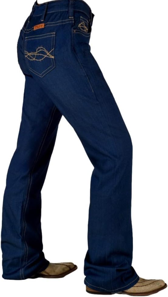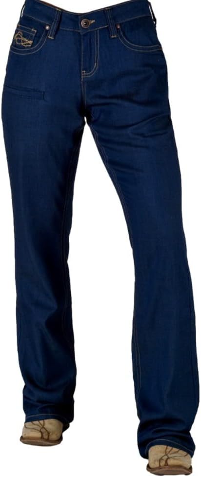 Womens Cowgirl Tuff Jeans: Ladies Cowgirl Tuff Denim Western Wear. Hey Cowgirl! These women's western UltraBreathe Classic dark wash jeans from Cowgirl Tuff are a cooler, lightweight jeans that are made for the hot and humid summer days. They have a natural waist with slightly relaxed legs and 1 cellphone pocket. These jeans have a bootcut leg opening with medium stretch. 65% Lyocell, 16% Polyester, 17% Viscose, 2% Spandex. JULCLD