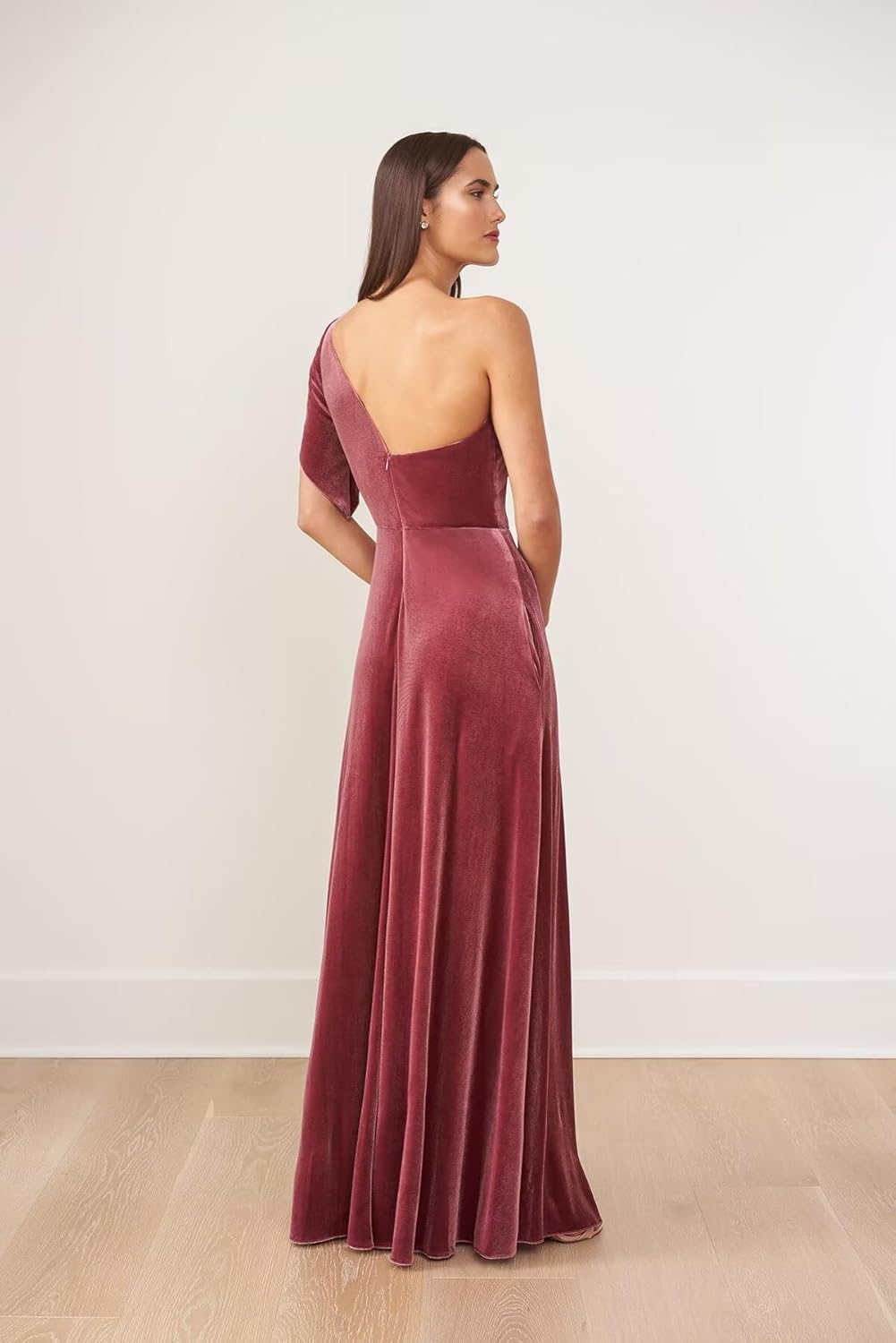 | Embellishment Feature | Fall Wedding Guest Dress Elegant, Long Slit Velvet Bridesmaid Dress, Mother of The Bride Dress, One Shoulder Formal Velvet Dress |