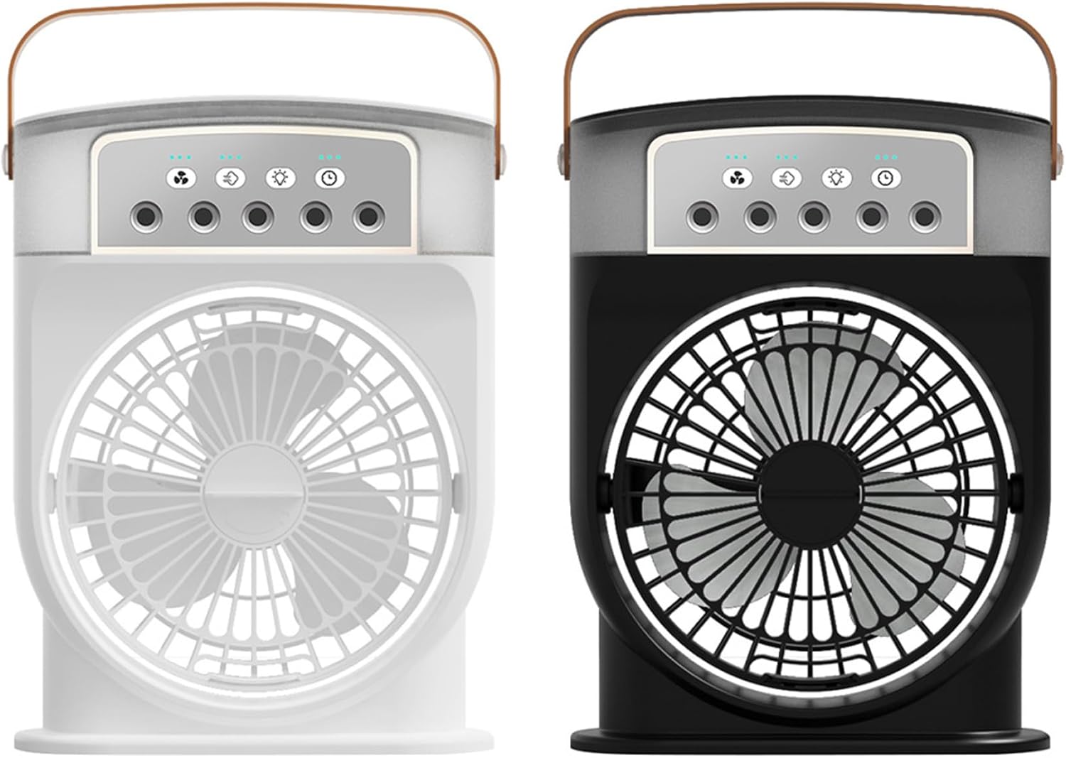 Description: The Portable Air Cooler Evaporative is the perfect solution for staying cool and comfortable during hot summer days! This innovative features a powerful evaporative cooling system that cools and humidifies the air around you, providing relief from the heat and dryness. With three adjustable wind speeds and night light design, you can customize the airflow. The is also incredibly quiet, making it perfect for use in the office, bedroom, or any other space where you need to stay cool without disturbing others. Features:. Cooling Air Fans. -Color: Black. -Material: PP. -Size: about 21x26 cm/8.27x10.24 inch. -Number of nozzles: 5 nozzles. -Fan gear: 3rd gear adjustment. -Water storage capacity: 600ml. -Night light color: 7 colors adjustable. -Timing gear: 1-3h. -Output power: 5W. -Power supply method: USB TYPR-C. -Product line length: 1.2 Meter. Note: Manual measurement, please allow slight errors on size. The colors may exist slight difference due to different screens. Package Including 1 x Air Cooler