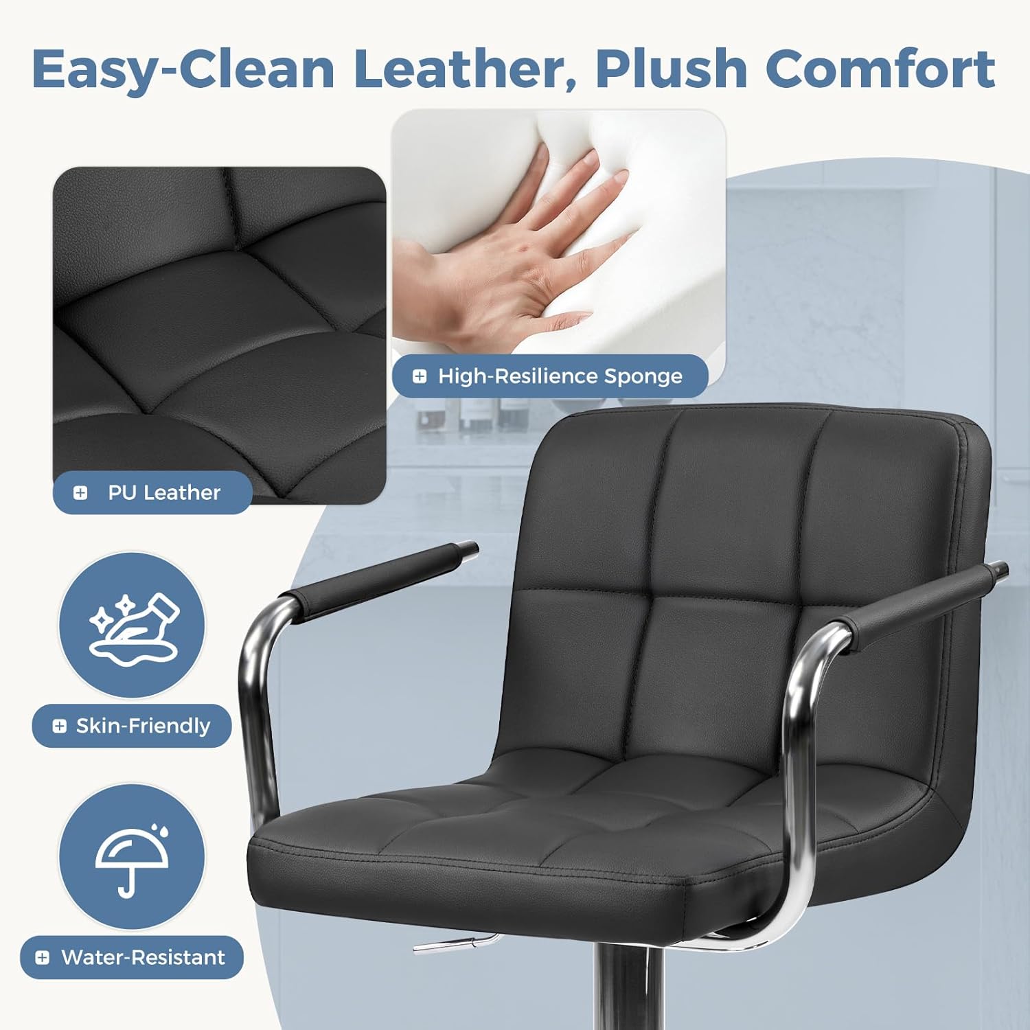 | Item Type Name | Modern Faux Leather High Barstools with Back and Metal Leg, Bar Chairs for Kitchen Island, Brown |