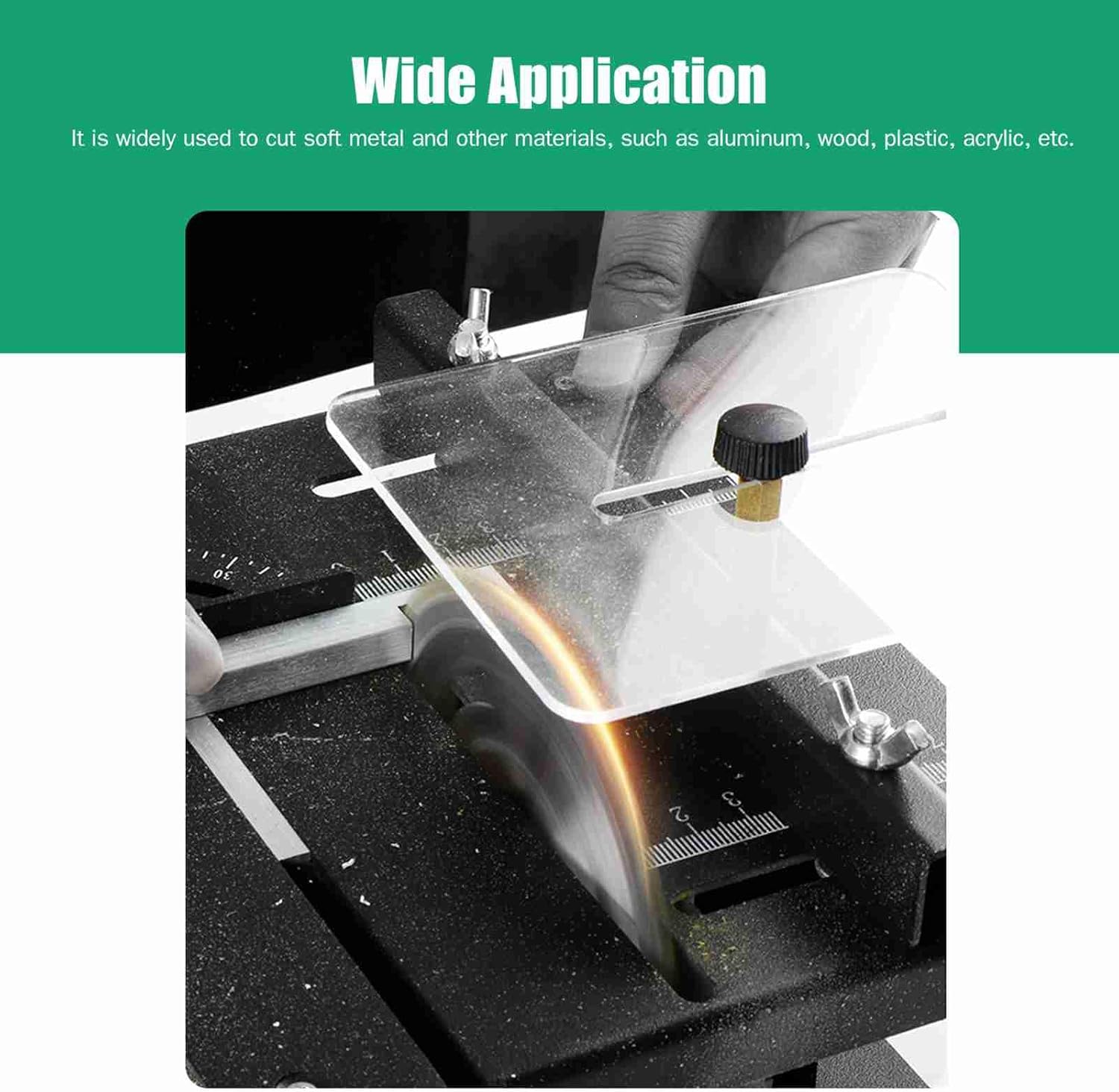 Specifications: Material: Metal + Electronic Components Color: Black Plug: EU Plug, US Plug (Optional) Type: With Bevel Cutting, Without Bevel Cutting (Optional) Power Voltage: 110-240V Rated Input Power: 200W Voltage: 24V Current: 20A Motor Speed: 10000rpm Output Speed: 1000~3000rpm Cutting Depth: 0~35mm 7-Level Speed Adjustment: Yes Angle Adjustment: NO (for without bevel cutting type) / 0~90° (for with bevel cutting type) Saw Vane/Wing Diameter: 110mm / 4.33in Item Weight: 1926g / 67.93oz Item Size: 19*16.5*10cm / 7.48*6.49*3.93in Package Weight: 2600g / 91.71oz Package Size: 25*22*16.5cm / 9.84*8.66*6.49in Note: This table saw cannot be used to cut high density board, iron, steel. Due to manual measurement, there may be deviation. Due to lighting, the picture and material object may slightly differ in color, please in kind prevail. Packing List: 1 * Table Saw 1 * Power Adapter 1 * User Manual 1 * Saw Vane/Wing 1 * 1 * Transparent Cover 2 * Wrench 2 * Wing Nut 1 * Coupling Nut 1 * Cap Nut 1 * Backer