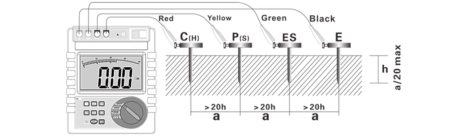 Product Main Function: 1. 2/3/4-wire method measure earth resistance,Range:0.00Ω~30.00kΩ; 2. Soil resistivity measurement, Range:0.00Ωm~9000kΩm; 3. Earth voltage measurement,Range:AC 0~600V 4. Data storage: 300 sets 5. Alarm function: audible and visual alarm Earth Resistance (R) Measurement Range and Accuracy Range:0.00Ω-30.00Ω,Accuracy:±2%rdg±3dgt,Resolution:0.01Ω Range:30.0Ω-300.0Ω,Accuracy:±2%rdg±3dgt,Resolution:0.1Ω Range:300Ω-3000Ω,Accuracy:±2%rdg±3dgt,Resolution:1Ω Range:3.00kΩ-30.00kΩ,Accuracy:±2%rdg±3dgt,Resolution:10Ω Soil Resistivity (ρ) Measurement Range and Accuracy Range:0.00Ωm-99.99Ωm,Accuracy:(ρ=2πaR a:1 m~100m;π=3.14) ,Resolution:0.01Ωm Range:100.0Ωm-999.9Ωm ,Resolution:0.1Ωm Range:1000Ωm-9999Ωm ,Resolution:1Ωm Range:10.00kΩm-99.99kΩm ,Resolution:10Ωm Range:100.0kΩm-999.9kΩm ,Resolution:100Ωm Range:1000kΩm-9000kΩm ,Resolution:1kΩm Earth Voltage Measurement Range and Accuracy Range:AC 0.0-600V ,Accuracy:±2%rdg±3dgt ,Resolution:0.1V ❤❤Please refer to the pictures for other parameters.❤❤