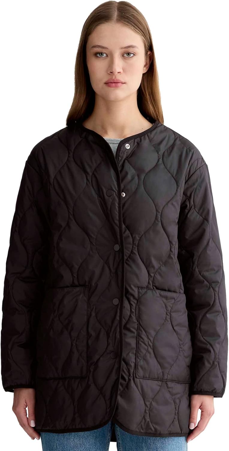 Hey shorty. We took our favorite military-inspired liner and made it shorter for easy layering. Made entirely from 100% recycled polyester*, The Quilted Liner is lightweight, packable, and perfect for easy cold-weather layering. Plus, it features a classic crew neckline, snap fastening, handy side pockets, and a quilted design. Wear it as a standalone jacket or layer it under a coat for extra warmth without the weight. *Some of the snaps and trim aren’t 100% recycled, but we’re working on it. We’ve eliminated 90% of the virgin plastic from our supply chain. Learn about what we’ve done—and the challenges ahead—on our No New Plastic page.