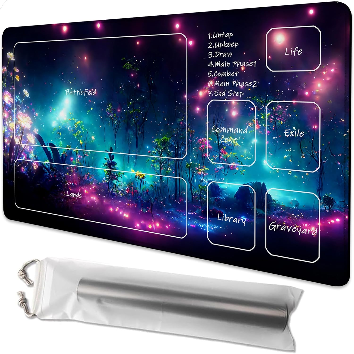 Multiple Functions Playmat: This card playmat is Compatible with MTG/TCG/YGO/CCG/RPG/PKM. It can also be used as a card play mat and playing card mat, a reusable game mat storage bag is also included