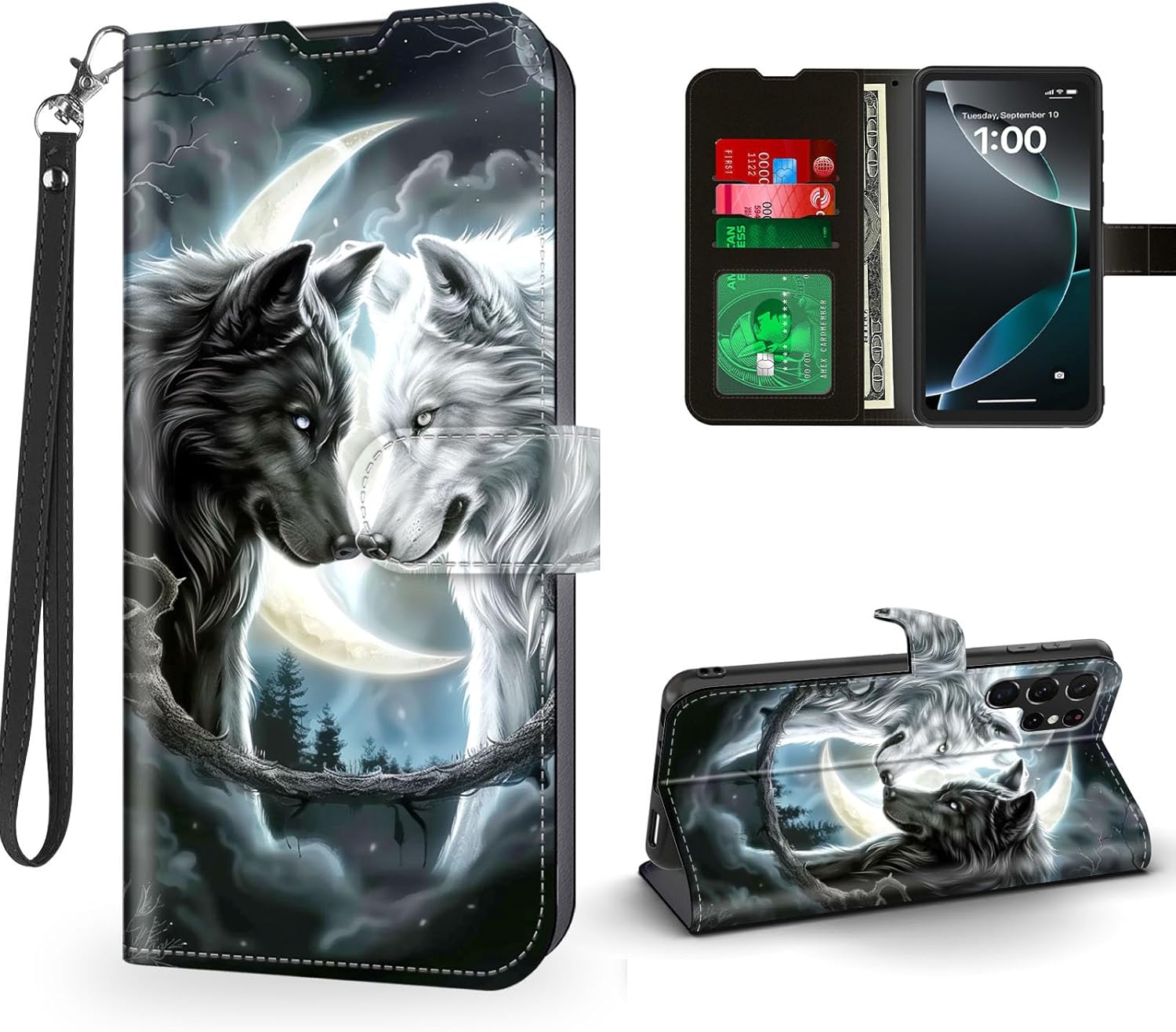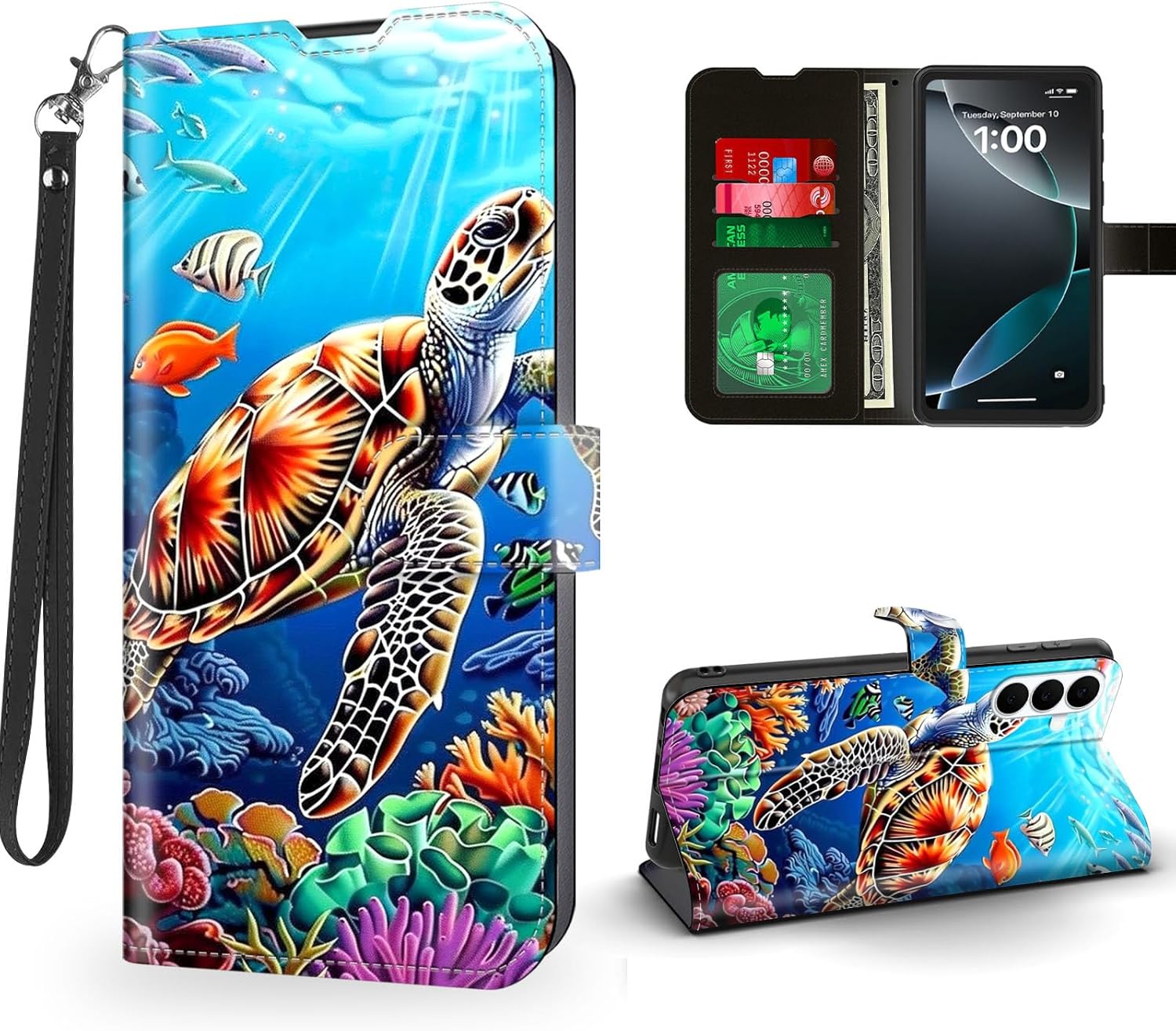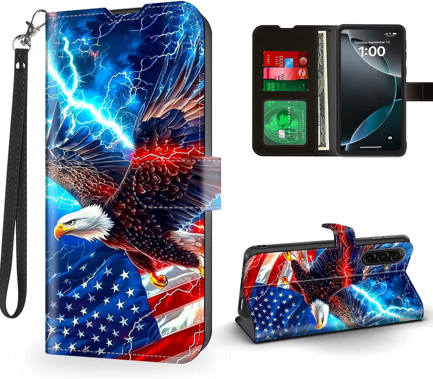 | BuiltIn Media | 1 * Leather Wallet Phone Case for Samsung Galaxy S25 FE & 1 * Leather Wrist Strap |