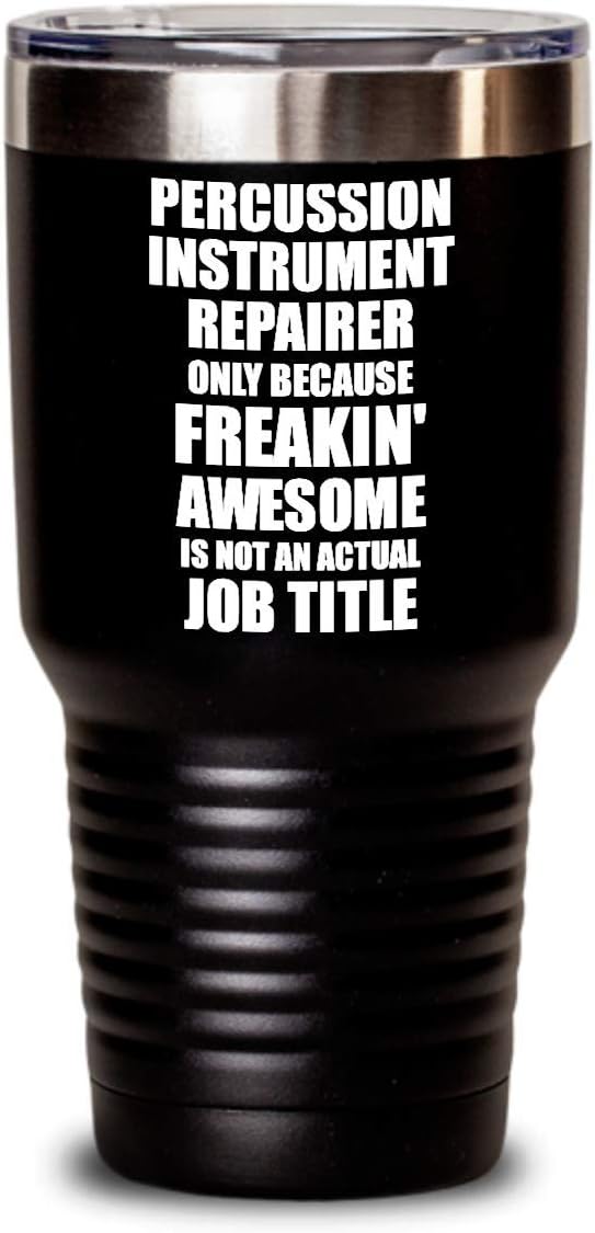 Funny Percussion Instrument Repairer Tumbler Freaking Awesome Gift Idea For Coworker Office Gag Job Title Joke Insulated Cup With Lid Black 30 Oz SATISFACTION GUARANTEED: Absolutely love your order or contact us and we'll make it right. Your satisfaction is 100% guaranteed. HIGHEST QUALITY TUMBLER & UV PRINTING: This large 30 Ounces stainless steel with powder coating tumbler is professionally printed on one side with high-quality ink and techniques to ensure you the best quality on the market. BEST GIFT IDEA: High-quality & funny insulated tumblers, travel mugs, or car commuters, make a great useful present for women, men, friends, family, coworkers, or anyone you're thinking of! Our huge commuter cups with lid are perfect for any occasion, birthday, anniversary, retirement, Mother's Day, Father's Day, Christmas, or just please yourself! Ideal for outdoor activities or indoors at house or the office. ORIGINAL DESIGN, PROUDLY PRINTED AND SHIPPED FROM USA.