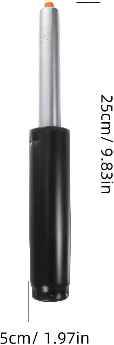 DescriptionThis gas spring for office chairs is suitable for most executive chairs, computer chairs, and office chairs. Made of stainless steel and ABS, it offers excellent corrosion resistance and smooth operation. With a maximum load capacity of 450 pounds (approximately 204 kg), this gas spring is ideal for heavy-duty office chairs.Features- Color: Black- Material: Stainless steel, ABS- Dimensions: 9.82 x 1.97 x 1.97 inches (25 x 5 x 5 cm)- Standard outer tube diameter: 2 inches; inner tube diameter: 1.1 inches- Heavy-duty gas lift designed for stable height adjustment and quiet operation- Reinforced stainless steel lifting rod ensures smooth, noise-free lifting and rotation- Explosion-proof for enhanced safety and durability- One-piece snap ring provides excellent sealing and secure installation without extra screws- 360-degree smooth rotation for flexible movement in all directions- Compatible with most office chairs, executive chairs, computer chairs, rolling stools, and drafting stoolsUsage & InstallationPerfect for replacing worn or broken gas cylinders in office chairs, this lift cylinder is suitable for daily office use, home workstations, or professional settings. It's also ideal for chair maintenance or upgrades.Installation is simple and tool-free, requiring no additional screws, making it an easy upgrade for your office chair's height adjustment mechanism.This gas lift cylinder replacement improves chair stability and comfort during long work hours, meetings, or home office setups.- Color: Black.- Size: 31.50X5.00X5.00CM.Package Including1 x Gas Lift Cylinder