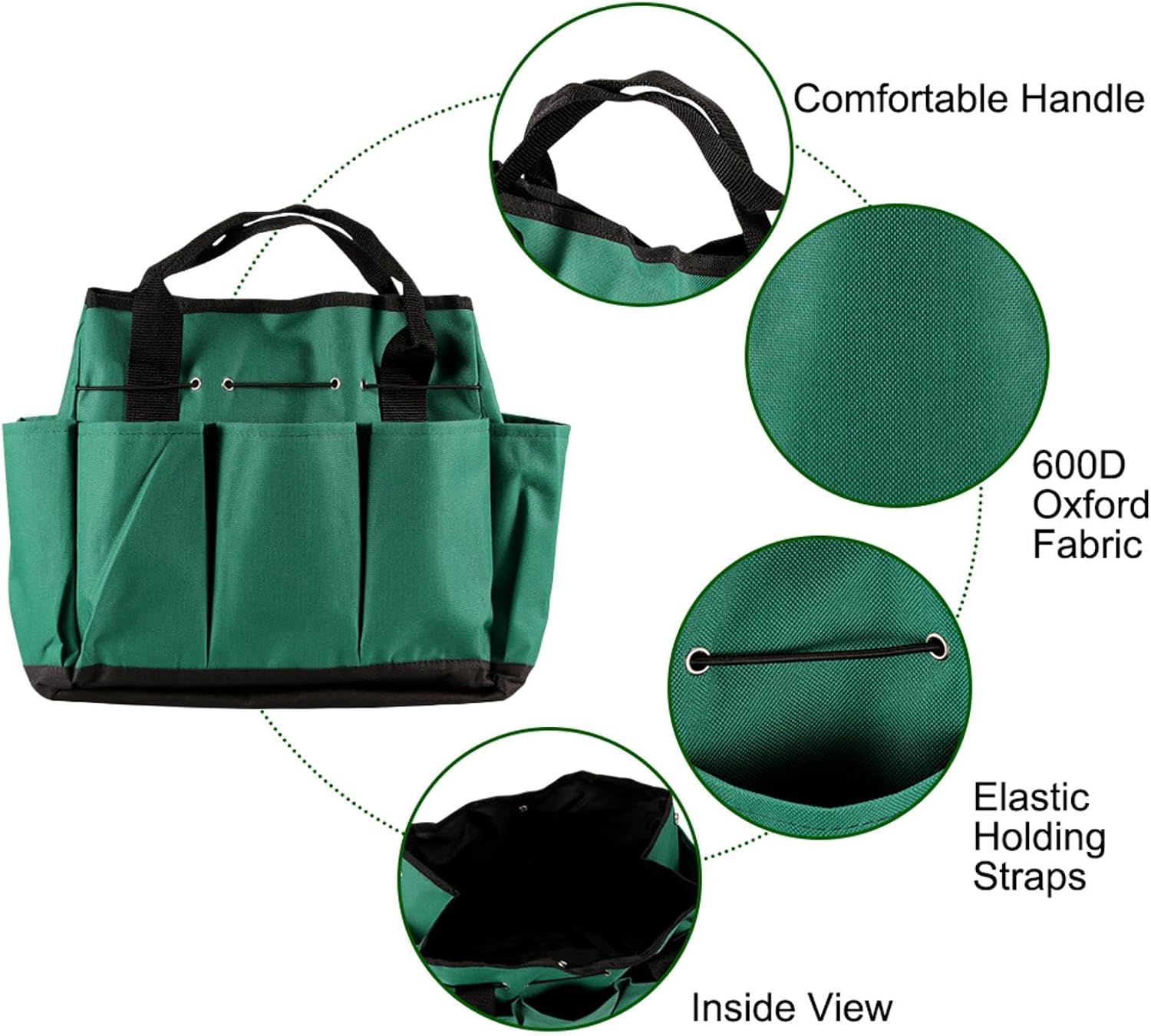 Features:1. Eight Pockets DesignThe garden tools bag provides you eight pockets surrounding it, which brings you more space to storage more tools, is very convenient2. High-quality MaterialThe garden tools bag is made of high quality oxford fabric material, is safe and non-toxic, sturdy and durable3. PracticalThe garden tool storage bag can store your seeds, garden gloves, spray bottle and so on. The tool storage bag comes with the small storage bag, easy to store your hand tool4. Handle DesignThe garden tools bag is specially designed with the handle, is easy to carry the storage bag5. Reusable and DurableTote bag can be used repeatedly and durable for long time useSpecifications:Type: Garden Tools OrganizerQuantity: 1pcsMaterial: 600D Oxford FabricColor:Dark GreenSize: 34.3x17.2x30.5cmPackage Included:1* Garden Tools Organizer