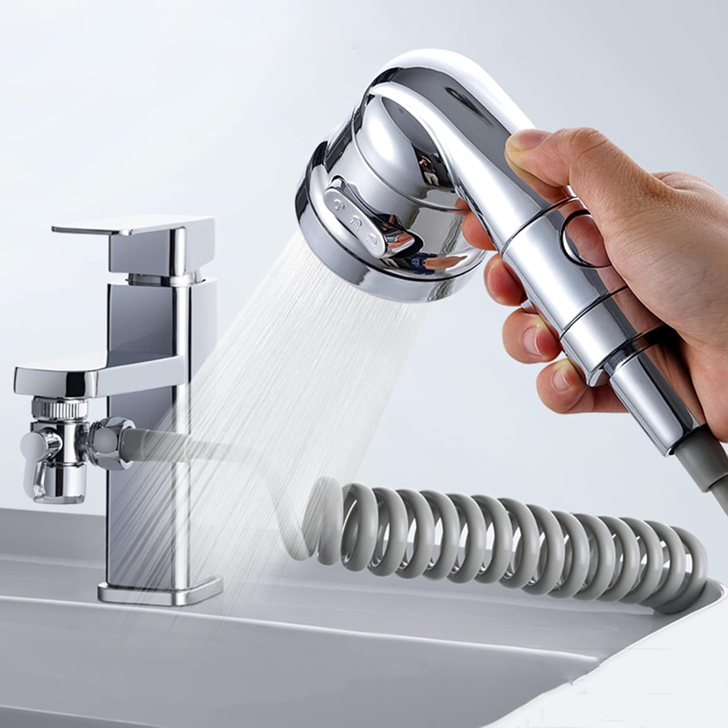 Touch On FaucetsProduct name: shower setMaterial: All copper water divider, ABS, 304 spray gunInstallation method: screw-inPackage includes: 1. 1 mini shower head;2. 1 water separator;3. 1 hole-free base;1 piece of 4.3m hose.5. 1 converter, installation accessories.Scope of application: suitable for adults, disabled, elderly, pets. Bathroom, spa or shower.Features:1. You can easily wash your hair in the sink without getting the bathroom wet, especially in winter, which is very convenient.2. Because the shower head has three modes, it can also be used to wash the sink and bathroom.3. The installation is very easy and you don't need to hire any staff.4. According to different scenarios, select the required suit.Due to different measurement tools or measurement methods, there is a slight difference in product size, please refer to the actual product.If you have any questions, please contact us via email. We will definitely give you a satisfactory answer.