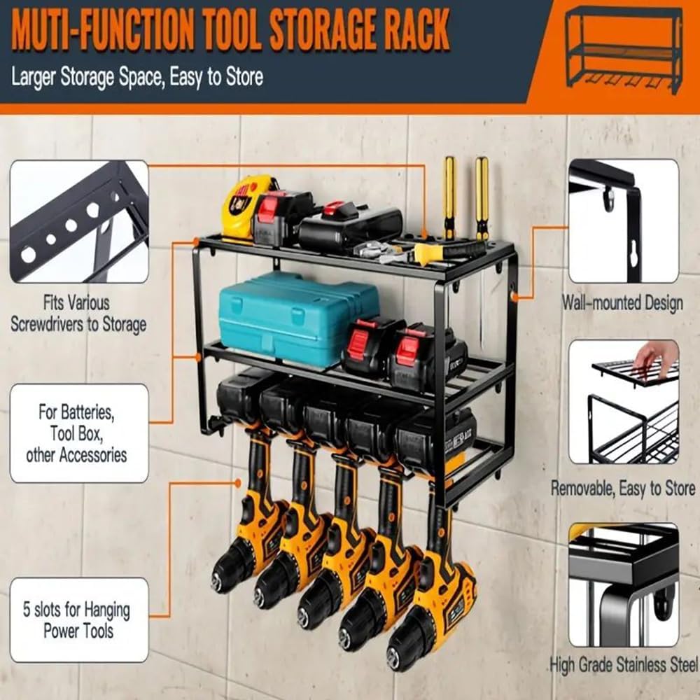 Transform your garage, workshop, or utility room with this heavy-duty power tool organizer, designed for those who value a clean and efficient workspace. Featuring 5 drill slots and 3 spacious shelves, it offers secure storage for a variety of power tools, hand tools, and accessories. Constructed from high-strength steel, this tool rack is built to last, providing the durability needed to support heavy tools while maintaining its stability over time. The wall-mounted design maximizes vertical space, allowing you to free up your floor area and keep your work environment organized and accessible. Whether you’re tackling routine maintenance tasks, home repairs, or larger projects, this versatile tool organizer ensures that your tools are always within reach, boosting your productivity and workflow. Installation is a breeze, thanks to the included mounting hardware and clear instructions. Whether you’re a seasoned pro or a DIY hobbyist, you can quickly and easily set up this organizer in your preferred workspace. Choose this heavy-duty tool rack to create a more professional, tidy, and efficient work environment today.