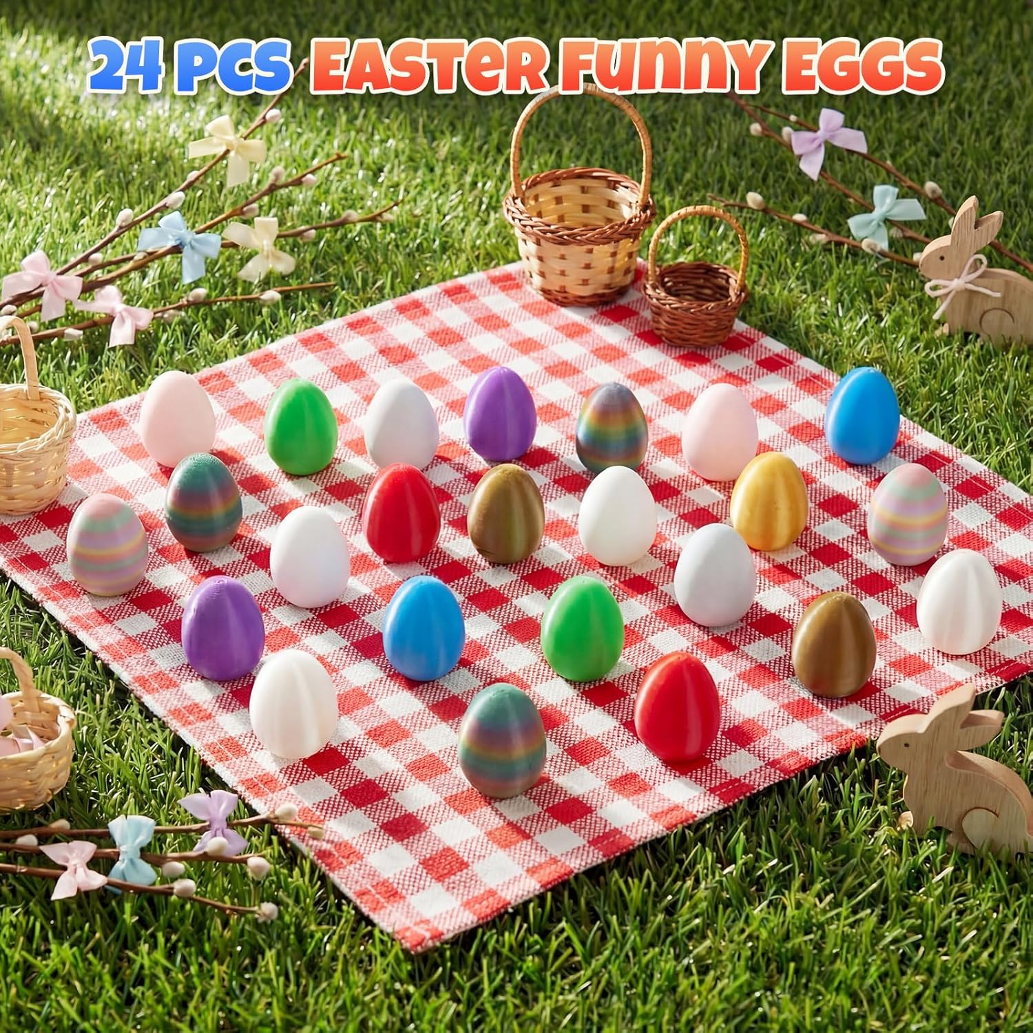 Features: Fun Gift: Whether as a memorable and amusing decoration in your Easter basket or a hilarious gift for a friend or family member with a sense of humor, this is a nice choice. Suitable for Any Occasion: Whether you want to play a prank on a friend, colleague, or family member, this finger Easter egg is the ideal funny gift for a memorable and fun moment at Easter or any special occasion. Specifications: Color: colorful Material: PLA and PETG Package includes: 24 x Finger Easter Eggs Notes: Manual measurement, please allow slight errors on size. The color may exist a slight difference due to different screen displays. This product contains small parts and poses a choking hazard. Keep away from children and pets to avoid accidental ingestion