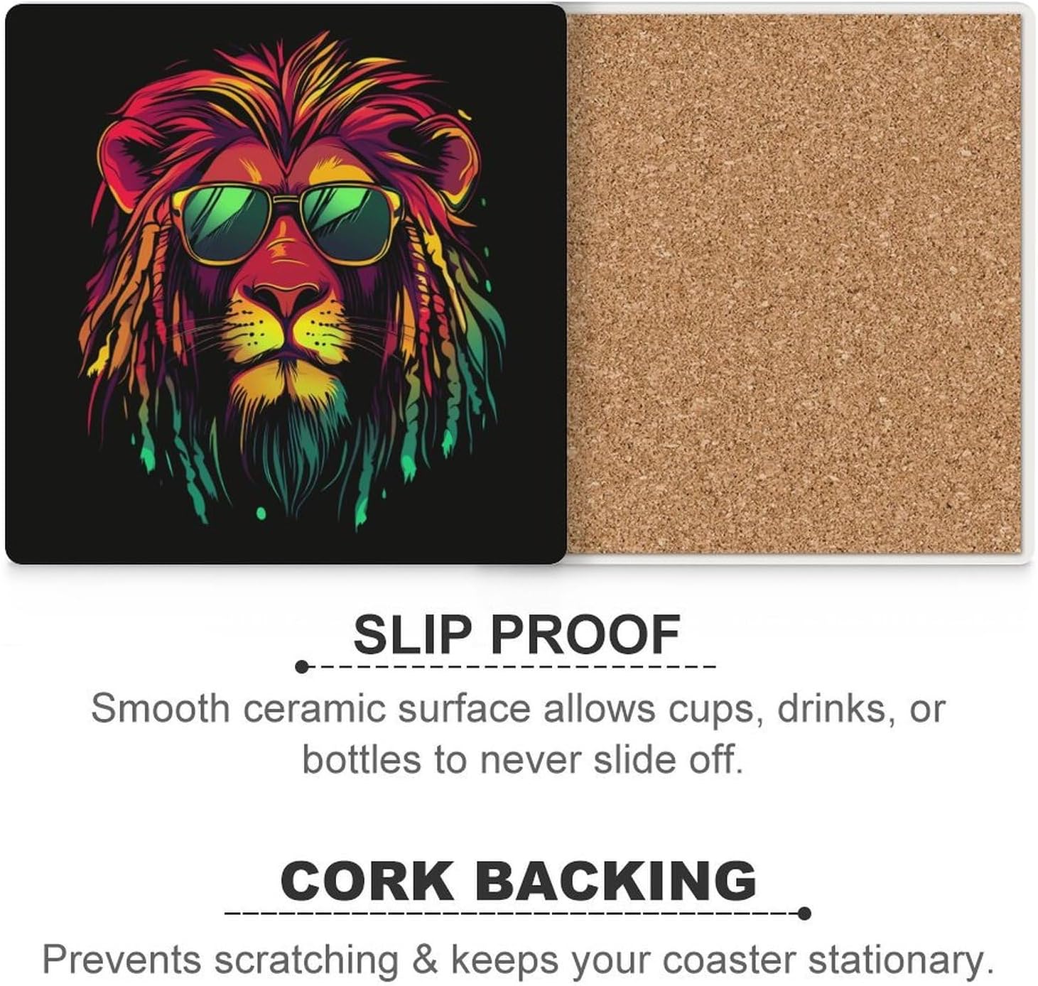 Cute Printed Absorbent Ceramic Coaster for Drinks Funny Coasters with Cork Base Suitable for Kinds of Mugs, Cups, Prevent Tabletop Wear And Scratches, and is Easy to Clean