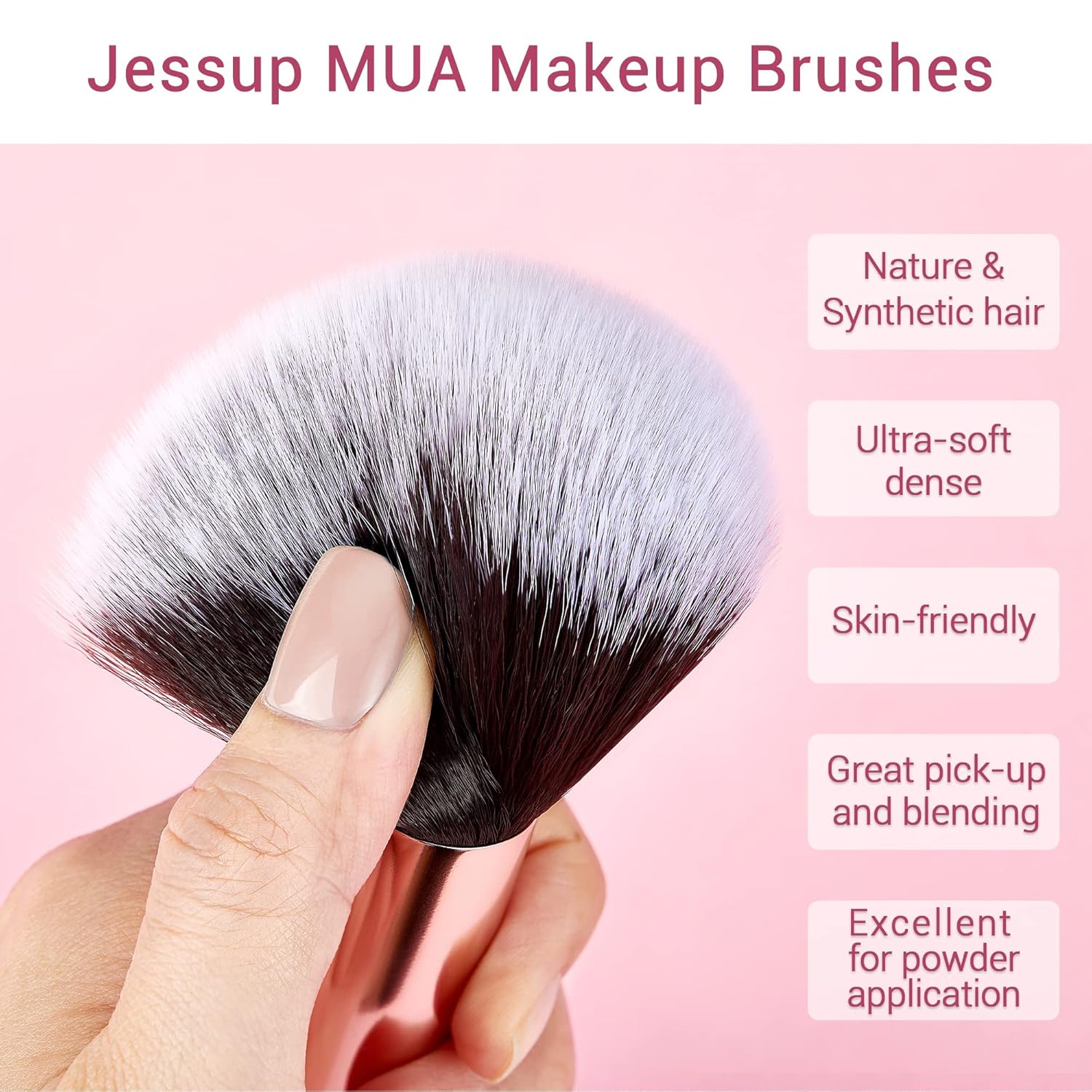 Jessup Professional Makeup Brush Set Black/Rose Gold 25pcs, T155 Strong ability to grasp the powder Super flexibility for better application Ultra soft and skin-friendly Jessup Makeup Brush Cleaning Mat with Color Removal Sponge, 2 in 1 Silicone Makeup Brush Cleaner Material: Non-toxic silicone + Sponge Wet side: Performance grade silicone Dry side: Makeup-removing sponge Diameter: 11cm (4.33 in); Height: 2.4cm (0.94 in)