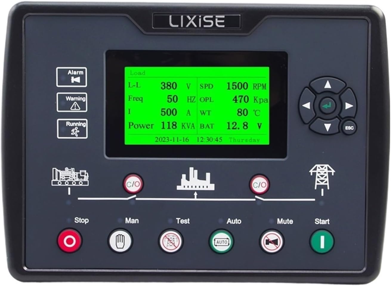 Control ModulesFeatures:Dust proof designMaintenance reminderBlack Box Patent TechnologyEarly fault defense technologyParameter Description:Rated voltage for power generation: 30-620VRated frequency of power generation: 10-65HzAC power supply mode: 0 three-phase four wire; 1 Two phase three wire; 2 single-phase two wire; 3 three-phase three wire;Rated current for power generation: 5-6000ARated active power generation: 1-59999KWHigh water temperature threshold: 80-140 º C, judgment only starts after the safety delay endsLow oil pressure threshold: 0-400kPa, judgment begins after the safety delay endsRated engine speed: 0-6000RPMOvercurrent protection threshold: 50-130%Low fuel level threshold: 0-100%External dimensions: 210mm x 152mm x 46mmOpening size: 186mm x 141mm