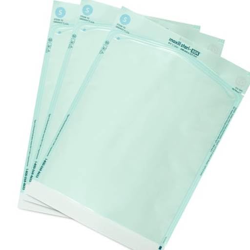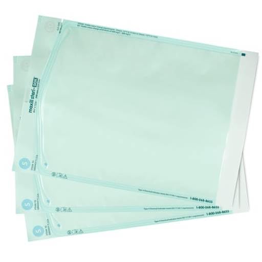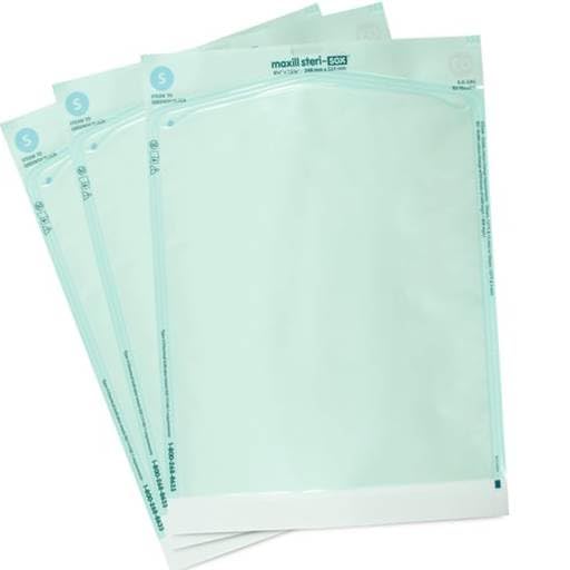 maxill steri-sox Self Sealing Sterilization Pouches, 9.75"x12.75", 200/Box. Multi-parameter internal and external indicators to let you know that the pouches were sterilized. Fully compatible with steam, and EO gas.