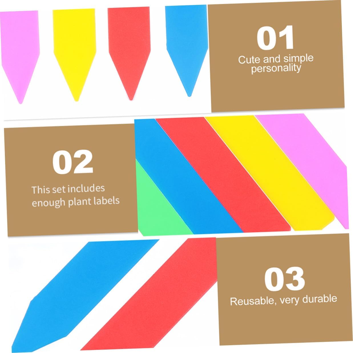 Package List 600 Labels Features -Product Info:Plant label card insert - Material: PP. - Size: 10.00X1.80X0.20cm/ 3.93X0.71X0.08inch. - Different colors plant labels are suitable for manage and categorize of plants. - They are suitable for fruit trees, seedlings, flowers, greenhouses, pot experiments, etc large garden markers. - It is widely used in the garden or nursery for seedlings labeling, helping you keep track of the plants pot name tag. - Made of premium pp material, it can be used normally in any weather conditions. - ColorAssorted Color - They can be reused, easy to clean, and convenience to mark using the mark pen greenhouse label.Goods Informationgarden tags for plants This plastic plant labels set can help you decorate your beloved garden or home plants.garden markers Also, it’s the perfect gift for friends, colleagues, lovers and family members who like gardening, they are beautiful and useful
