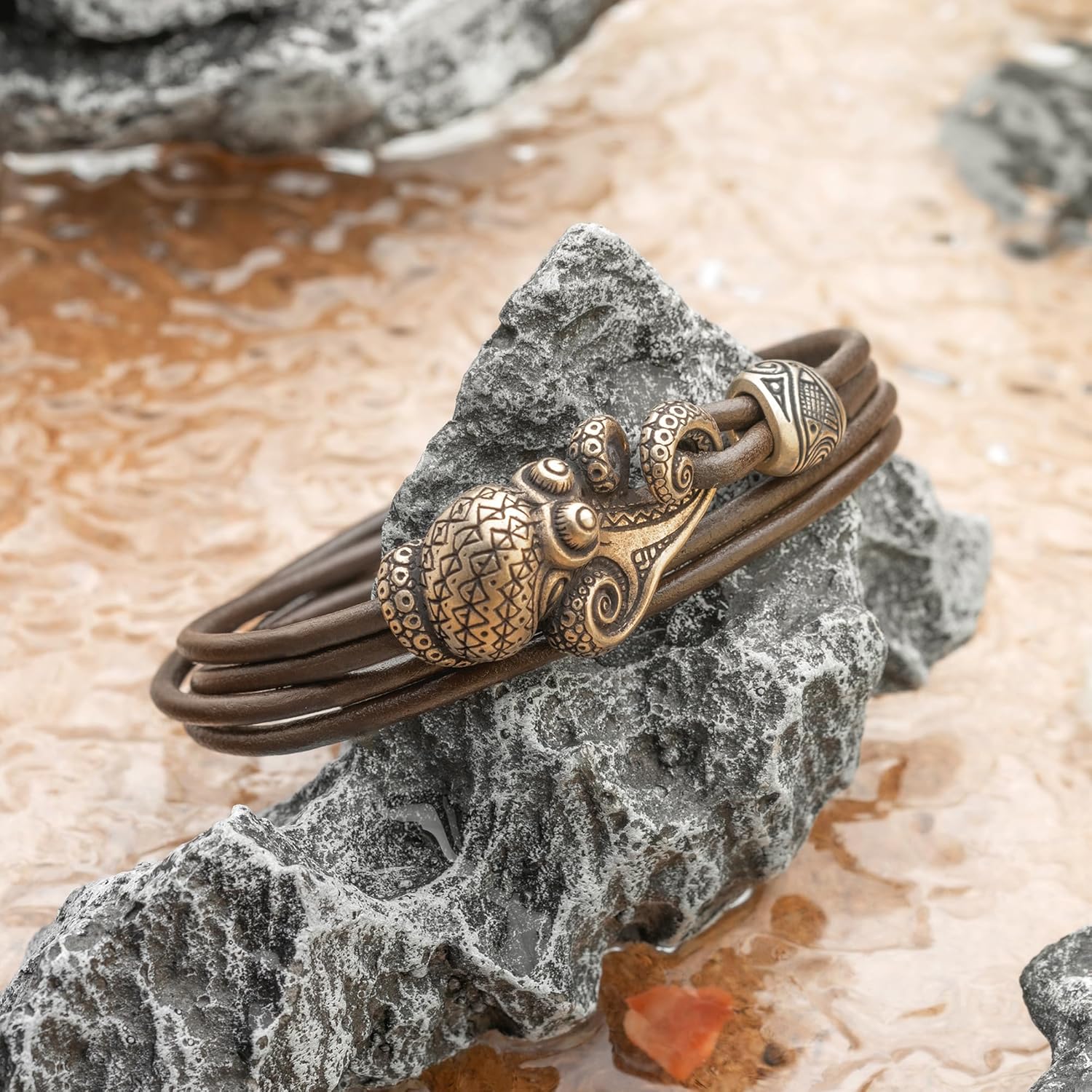 OCEAN BRACELET WITH OCTOPUS PREMIUM MATERIAL - The Maori armband is made of high-quality, solid, and durable Italian Bronze PANDORA with a content of 88% Copper and 12% Tin. For the production of leather bracelets, we use only high-quality Spanish cords (color brown) with a thickness of 3 mm. CARE OF HEALTH - Our Nautical jewelry does not include harmful metals such as Lead, Cadmium, and Nickel, the content of which can adversely affect your health. DESIGN - We create Maori jewelry with love and admiration for the unique culture of the Maori people. All that we sell, we create and produce ourselves in Ukraine. Our Maori armband is unique and detailed. DAILY USE - The Maori bracelet with octopus fits perfectly into any clothes, does not cause discomfort or allergy, has a stylish design, and is suitable for daily use.. EXCELLENT GIFT - Our Beach jewelry for men and women is an excellent gift for him and her for Birthday, Christmas, Father's Day, Thanksgiving Day, Valentine's Day, Anniversary and etc. WE GUARANTEE - that each of our customers will receive their order or a full refund. We ship worldwide by priority airmail (with tracking) from Ukraine. If your surfer bracelet was broken, it can be replaced within 3 months.