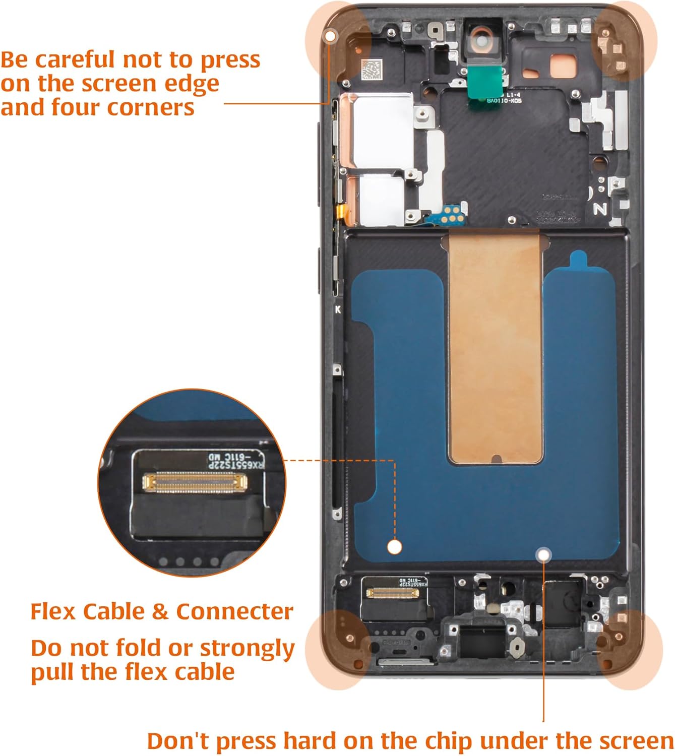 OLED Screen Replacement Assembly for Samsung Galaxy S23 Plus (With Frame) This Olivechard OLED screen replacement is designed specifically for Samsung Galaxy S23 Plus. It includes a complete OLED display and touch screen digitizer assembly with frame, helping ensure proper alignment and easier installation during full front screen replacement. Aftermarket OLED Screen Notice This product is an aftermarket OLED replacement screen, not an original part. Compared with the factory-installed screen, minor differences in brightness, color tone, or uniformity may exist. Compared with In-Cell LCD screens, OLED provides superior contrast, deeper blacks, and a more refined visual experience. Fingerprint Authentication Support This screen supports under-display fingerprint recognition. Fingerprint functionality depends on proper installation and transfer of original fingerprint-related components. The fingerprint sensor itself is not included with the screen assembly. Compatibility & Specifications Compatible with: Samsung Galaxy S23 Plus only Model numbers: SM-S916B, SM-S916B/DS, SM-S916U, SM-S916U1, SM-S916W, SM-S916N, SM-S9160, SM-S916E, SM-S916E/DS Screen type: OLED display + touch digitizer assembly Assembly type: With frame ⚙️ Simulation Test (Highly Recommended) Do not remove protective films or labels during testing Use ESD protection when possible Keep the battery flex cable disconnected during testing Temporarily connect the screen to verify display, touch, and fingerprint functionality Stop installation and contact support with photo or video evidence if any abnormal behavior occurs ✅ Package Includes: 📦 1x OLED Screen for Samsung Galaxy S23 Plus (with graphite frame) 🛠 1x Screwdriver Set 🔧 1x Pry Bar 📌 1x Twin-Sided Tape 🧽 1x Dust Removal Sticker 📞📞 Customer Support If you encounter any issues with the product, please contact us with photos for assistance. We are committed to providing excellent support. Q&A SectionQ: Is this an original Samsung screen? A: No, this is a compatible OLED replacement, designed to offer reliable performance. Q: Can I install this screen myself? A: Self-installation is possible, but professional installation is recommended to prevent damage. Q: What should I do if the screen doesn’t work after installation? A: Check all connections and ensure proper installation. If the issue persists, contact our support team.