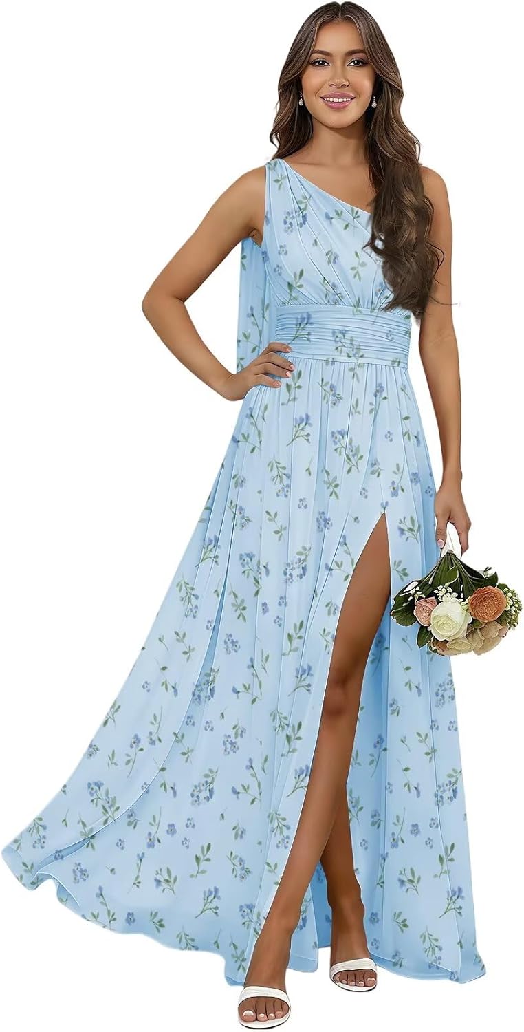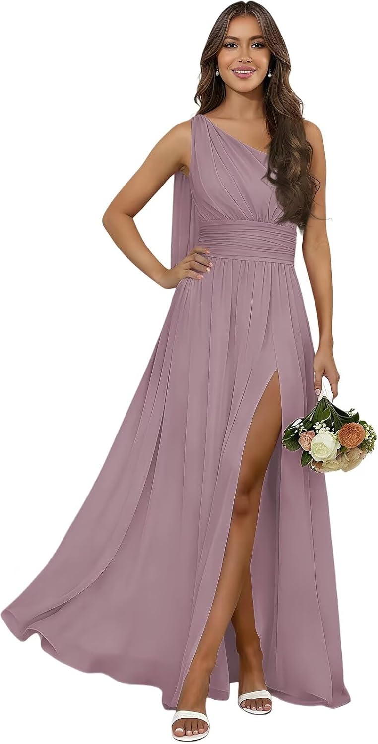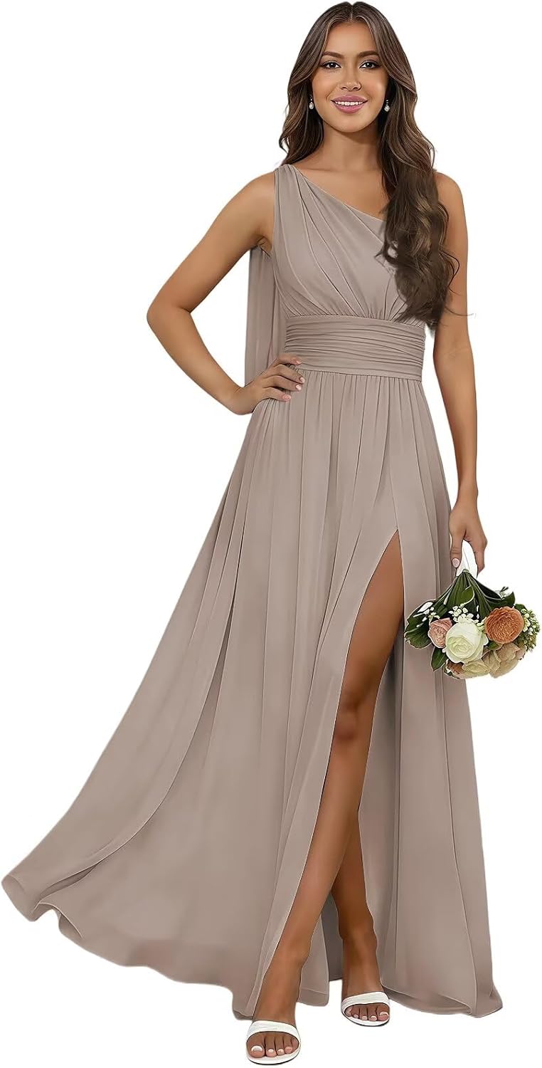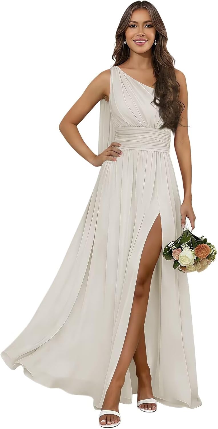 One Shoulder Bridesmaid Dresses with Scarf Long Chiffon Pleated Formal Evening Gowns with Slit HOW TO CHOOSE A CORRECT SIZE of this Bridesmaid Dress? 1:Measure your waist ,bust ,hips size and compare with our own size chart. 2:If your measurements are between two sizes, please choose the bigger one. 3. We provide free customized service, just send your accurate measurements as follow. - Bust (the biggest circle of chest) - Waist - Hip (the biggest circle of hip) - Hollow to Floor - Natural Height without shoes - Heels Height