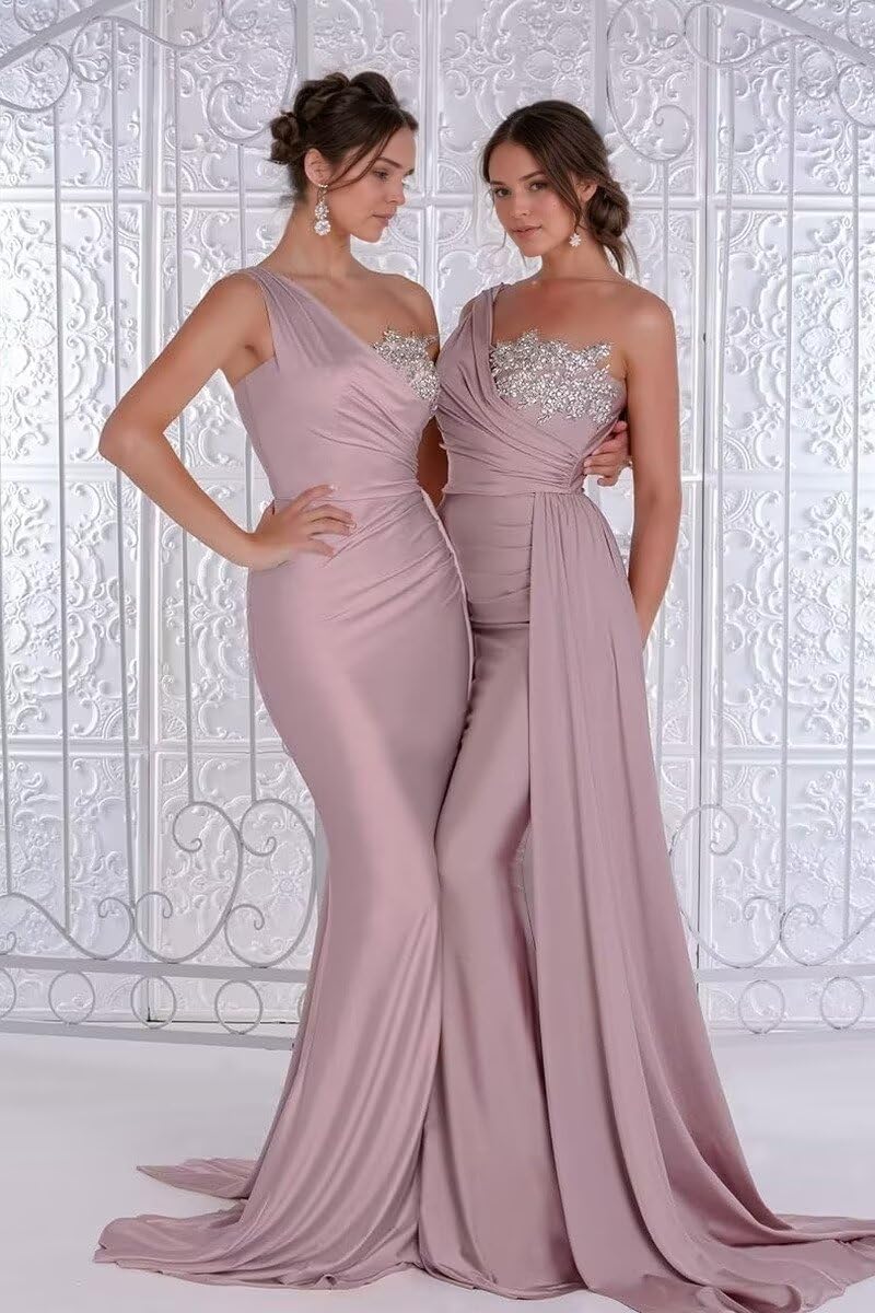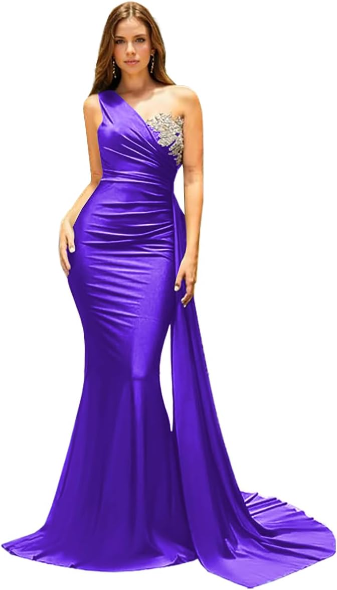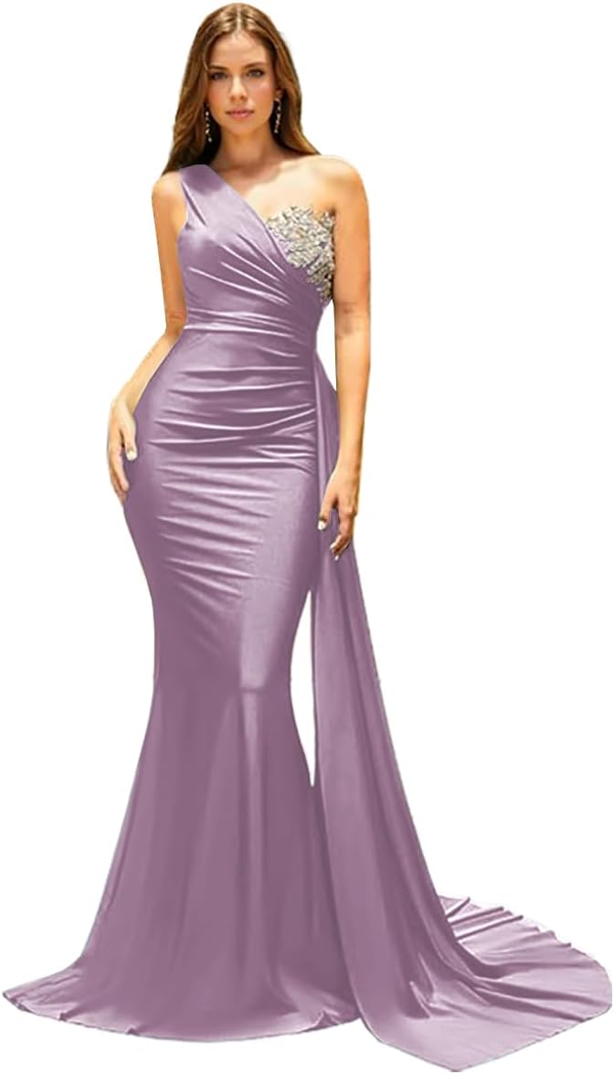 One shoulder prom dresses for women,beaded laces appliques formal evening gown,long elegant mermaid bridesmaid dresses for wedding,ruched satin backless party gown with train.Features for prom dressOne ShoulderMermaidOff ShoulderBeaded laces appliquesRuched SatinWash instruction●Hand wash●Do not machine wash and do not bleachThis 3d flower strapless prom dress is perfect party gown,formal evening dress for women,sweet 16 dress,wedding party dresses for women,bridesmaid dress,wedding guest dresses for women.