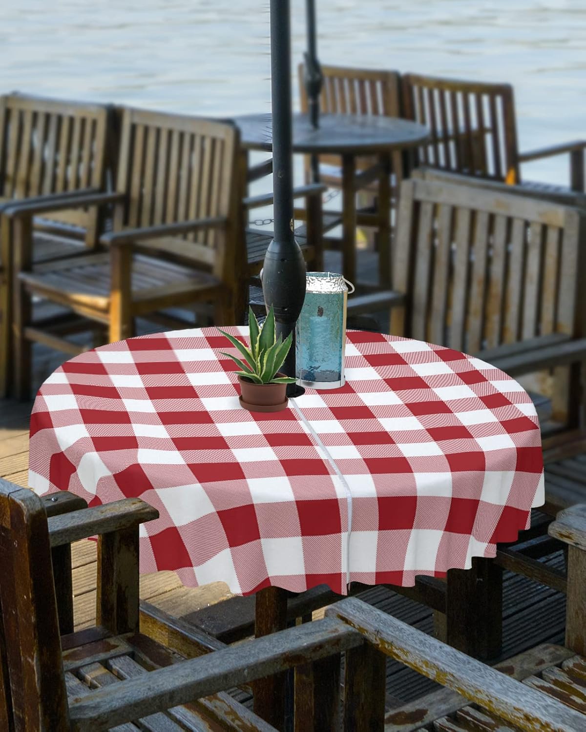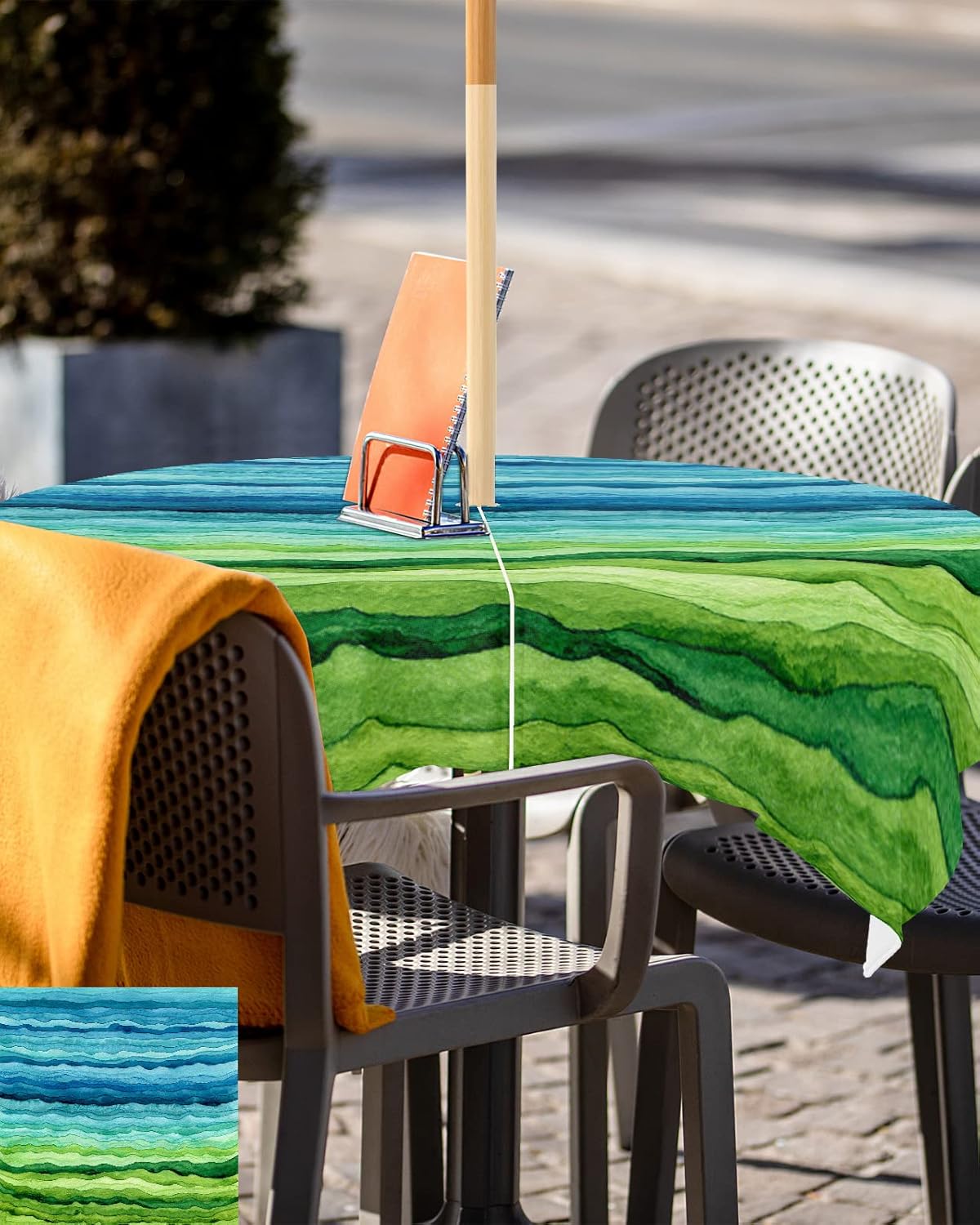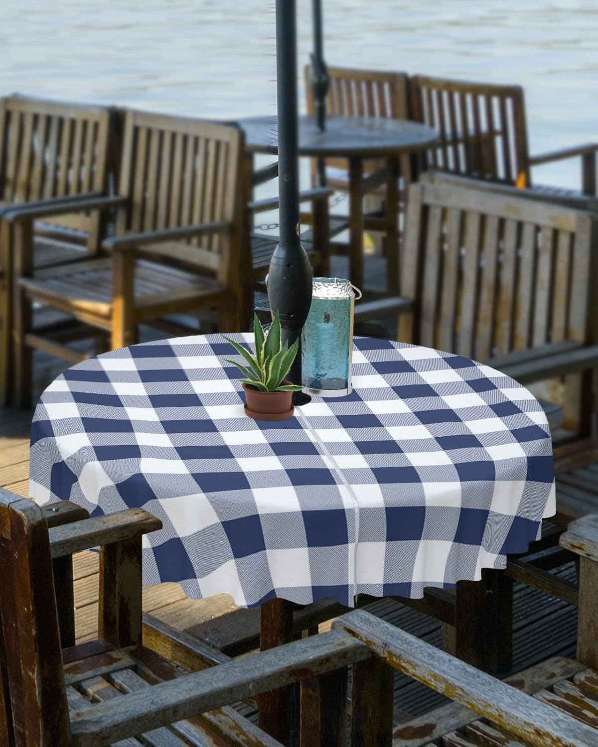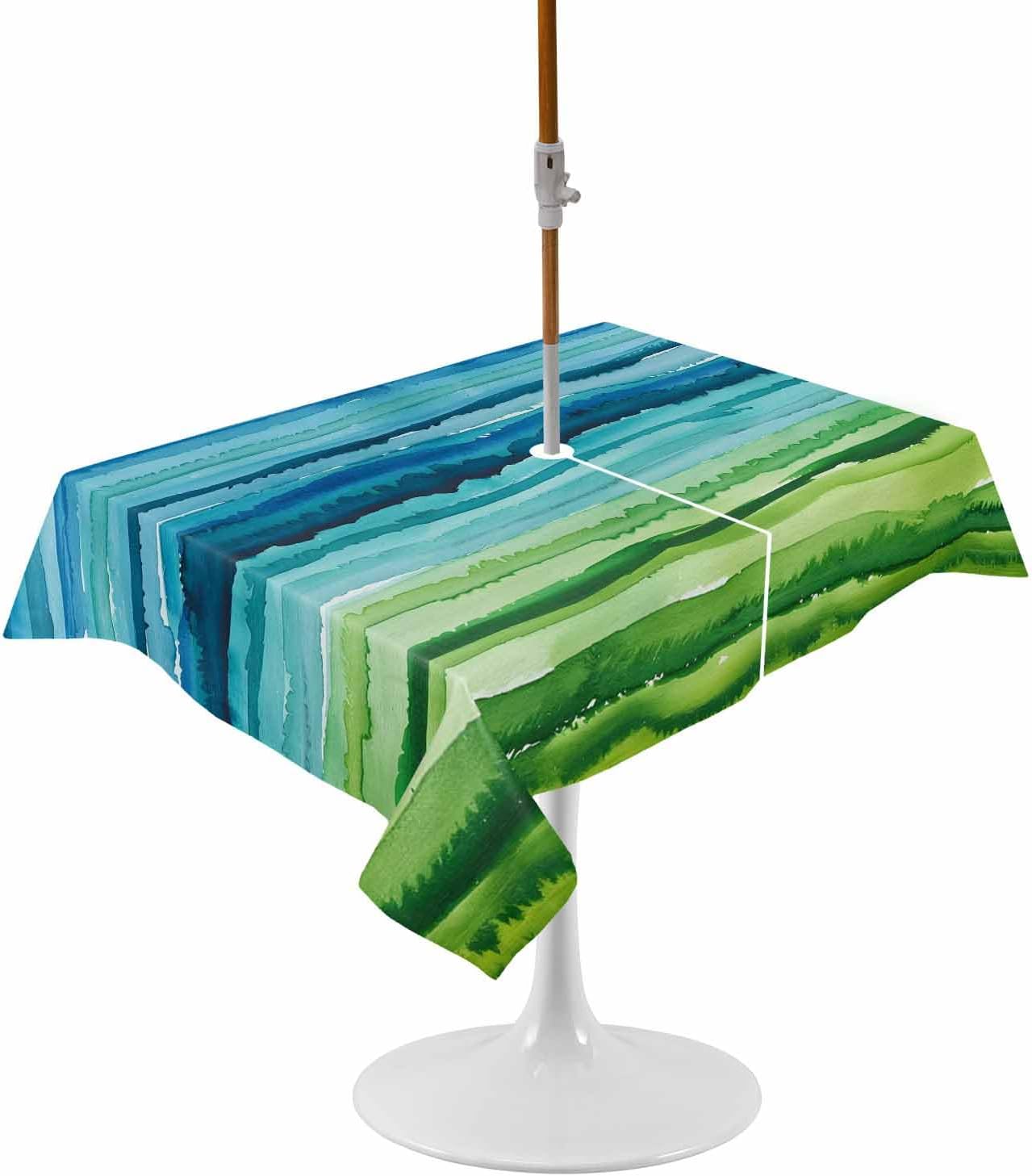 Outdoor Waterproof Spillproof Tablecloth with Umbrella Hole and ZipperWith the core concept of pursuing modern fashion, professional design, caring service, and ease of use, we provide practical and beautiful table cloths for every family all by heart.Outdoor Table Cover Feature☀We adopted high quality polyester fabric when making this table accessories cover. The premium material ensures perfect protection of your tables and furniture from dirt, scratches, spill, splash, graffiti and sun rays.☀Adopting fine sewing technology, the hem is designed with folded edges and delicate stitching to ensure elegant looking and no loose threads.☀The tabletop cloths are available in round, square and rectangle, featuring with zipper and umbrella hole to coordinate sunshade umbrella. Zip on and off easily around the patio table umbrella, there is no need to remove the umbrella.☀All liquids like coffee, red wine, sauce, juice, drinks can be easily and quickly wiped clean with a wet napkin or towel.☀The dining table covers will create a warm, inviting and wonderful look and feel with fancy colors and prints, your family, friends and you will love them.☀The table cloth for kitchen tables offer a happiness atmosphere dining experience. It can be used over and over again. You don't have to always buy new ones.☀All kinds of fashion patterns tablecloths are essential for your home kitchen, dining room, garden, balcony, yard, patio, cafes, buffets, restaurant tables.☀The exquisite protector covers for tables are perfect decoration on housewarming, wedding, baby showers, birthday party, graduation parties, St. Patrick's Day, Easter, Independence Day, Halloween, Thanksgiving Day, Christmas and other special occasions.☀Please do not expose the table cover to sunlight for a long time to prolong the service life.