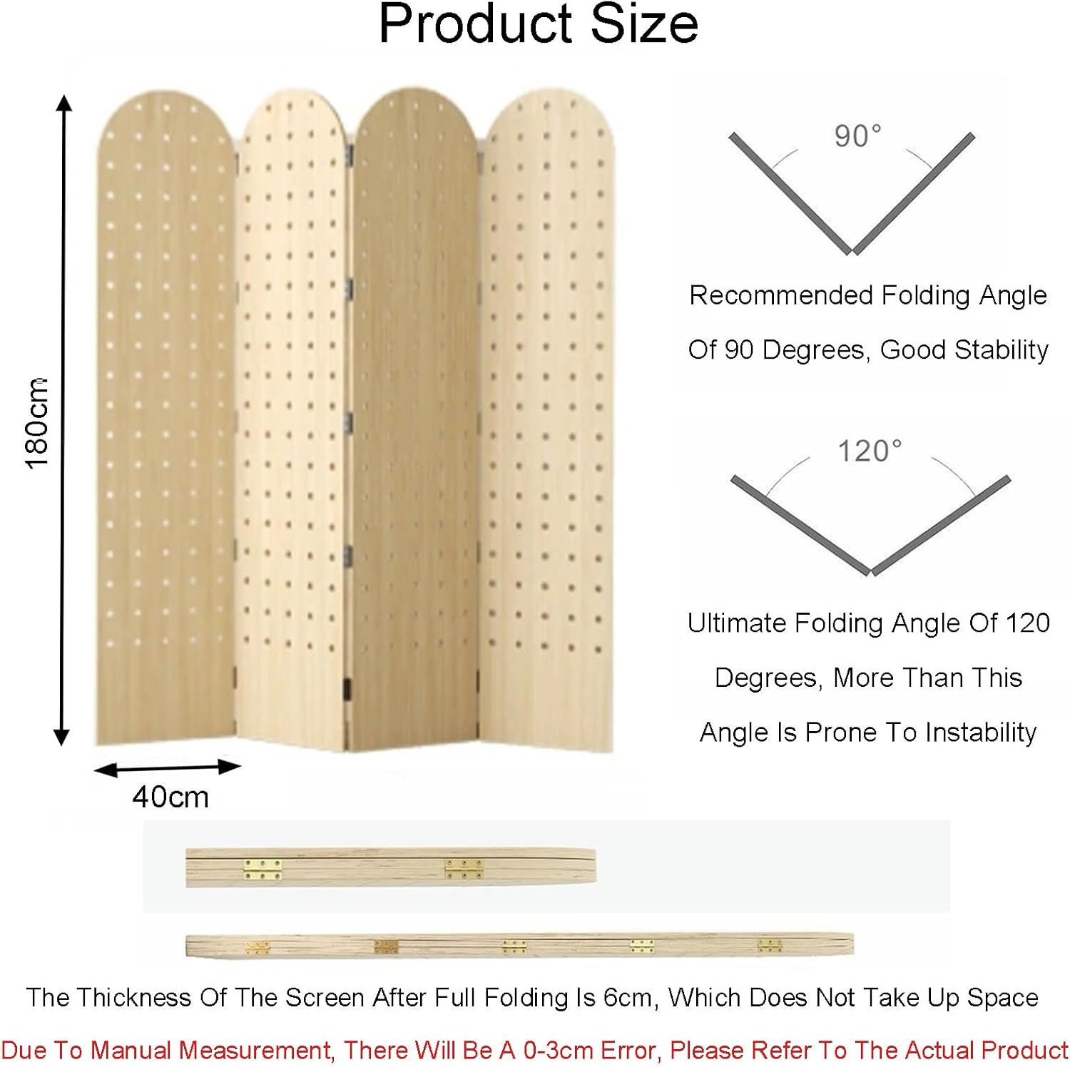 The room divider can divide the public into several parts,provide more privacy for a living room,bedroom,restaurant,dressing room,or shared apartment As household use, you can use it to divide living room and dinning room, to provide your own private space and extra storage space. As commercial use, you can use it as display function in flea market, craft fair, shopping mall and repair store FEATURES: 1.Practical folding design allows for easy storage and transportation 2.Screen can be adjusted 360°flexibly 3.Versatile for hanging jewelry, accessories, tools and other items 4.Room divider screen offers enhanced privacy 5.Standardized spacing holes are suitable for different hooks SPEICIFICATION Product name:pegboard partition screen/peg board room divider/Room partition screen/Room divider screen Color: Default is original wood color and White, please note if you want to customize other colors Made of: solid wood Size of single fan(H x W):180x40cm Installation:No installation required,Ready to use after unfolding Quantity: 2/3/4 Application scenarios:stores, bedroom, terrace, kitchen, office, trade show booths,Kindergarten, boutiques, children's room, doorway, balcony, study PACKAGE INCLUDE 2/3/4 panel x Peg board room divider and Accessories (The package only includes room dividers and accessories, and other items used for display in the picture are not included in the shipping list) WARM REMINDER: 1.The screen needs to be folded into a "V" shape to stand stably. It can also be folded and placed at will 2. Due To Manual Measurement, There Is 1-2cm Error Compared To The Actual Object 3.There May Be A Slight Color Difference Between The Recording Resolution And The Screen, Please Refer To The Actual Color