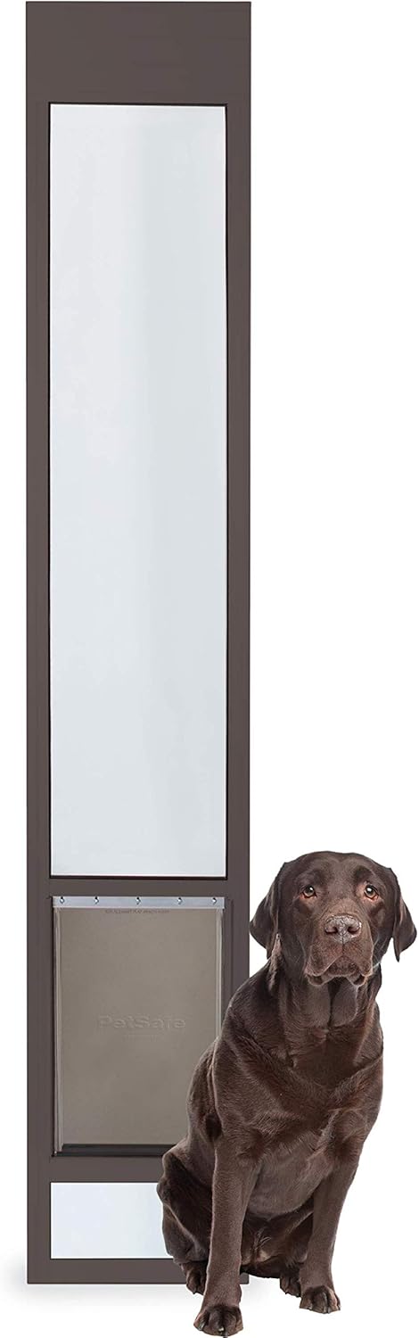 The PetSafe Sliding Glass Pet Door is the ideal apartment-friendly pet access solution for renters, condo owners, and anyone seeking an easy no-cut DIY install. This compact sliding pet panel comes in one piece and fits directly into your existing sliding glass door track, offering quick fit patio access without drilling or permanent alterations. Made from weatherproof aluminum and featuring shatter-resistant tempered glass, this temporary patio insert is built to withstand the elements while maintaining your home’s energy efficiency. The sealed magnetic entry flap ensures a secure, weather-resistant seal, while the snap-in closing panel and built-in human door locking system provide added access control. With adjustable height options to fit your specific patio door rails, and a flap opening, this wide entry dog flap system supports hands-free movement inside and out for your dog or cat. Whether you're looking for a permanent fixture or a renter-friendly addition to a sliding patio door, the PetSafe Sliding Glass Pet Door delivers reliable, customizable access for your pet without compromising your space. Since 1988, PetSafe has been driven by a simple belief: safe, healthy pets lead to happier lives for pets and their families. For over 25 years, we've been dedicated to enhancing the lives of pets and the people who love them, treating every pet as a cherished family member and delivering life-changing innovations designed to enrich every moment. With U.S. roots and a global reach, our vet- and trainer-recommended products are built for every pet and backed by exceptional customer support. From backyards to dog parks, we're on a mission to create fields of joy for happy, healthy, and safe pets.