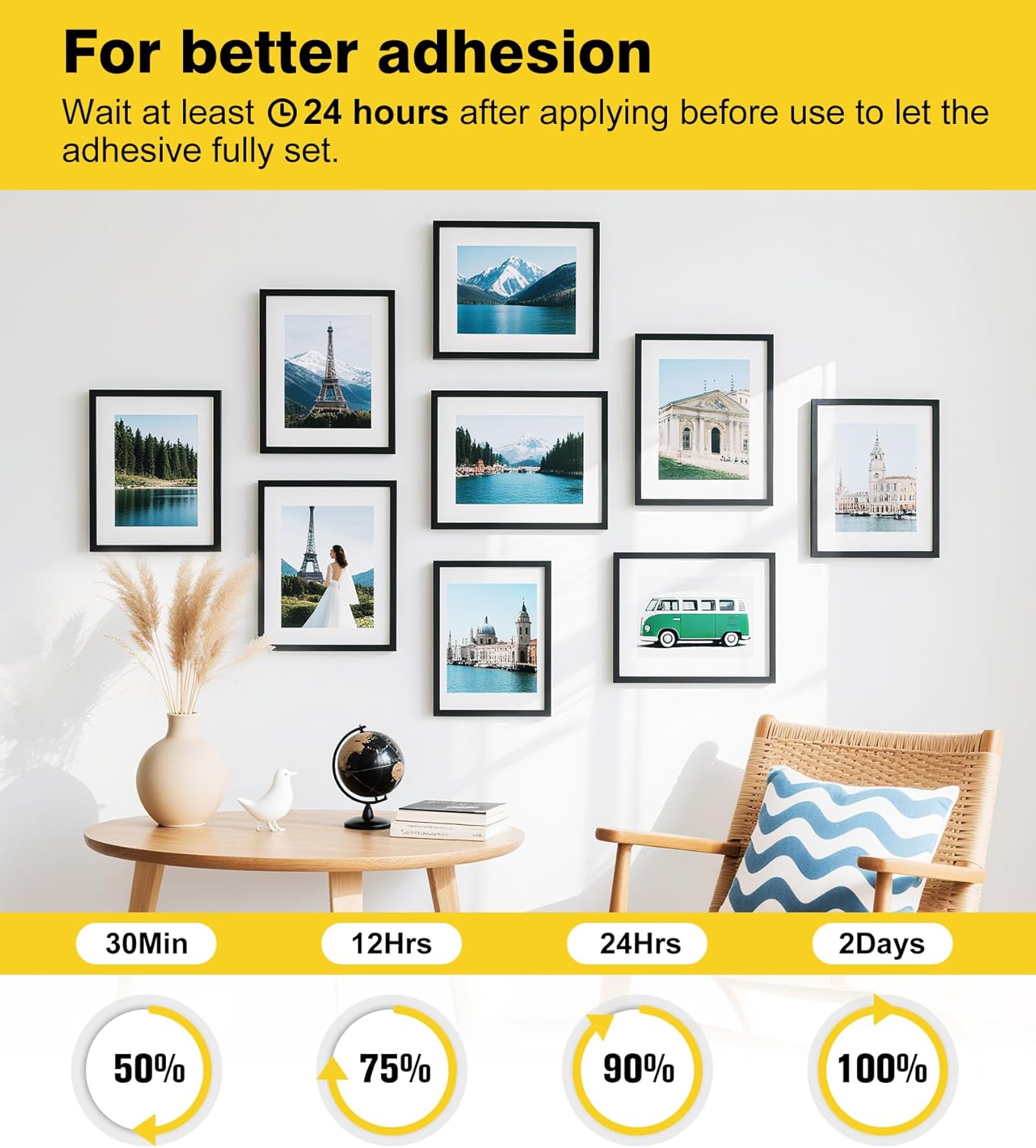 Summerbrite Picture Hanging Strips Specifications: ·Quantity: 60 Pairs(120 Pack) ·Model: X-Large and Large ·Usage: Indoor Widely Use Wall hanging strips work on a variety of smooth surfaces, including tile, glass, marble, metal, wood, and plastic. Not suitable for wet or rough surfaces. Strong Adhesion Specially formulated, all weather adhesive for smooth surfaces,Superior holding power meets requirements of demanding indoor and outdoor applications. No Tools Required Super strong adhesive backing can meet your needs,no need for drilling, nails, screws or epoxy.