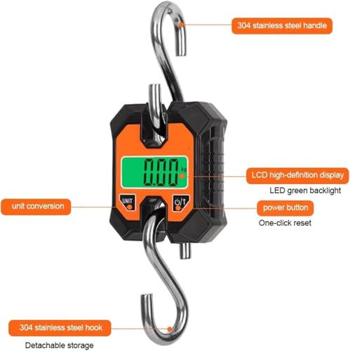 Introducing our Electronic Portable Crane Scale, the ideal solution for measuring heavy items with precision and ease. Designed for a wide range of applications, including fishing, industrial use, and personal weight management, this versatile weight scale has a weighing range of 0.05-300kg, making it suitable for various tasks. Constructed with a robust ABS injection molding body and a durable 304 stainless steel hook, this heavy-duty scale promises reliability and longevity. The scale features a clear LCD display, allowing you to read measurements effortlessly, even in low-light conditions. With multiple unit conversion options, including kilograms, pounds, and jin, you can easily switch between units to suit your preferences. Whether you're a fisherman weighing your catch, an industrial worker lifting materials, or someone managing their home projects, our crane scale is designed to meet your needs. Its compact size of 9.5*8*3.5cm ensures portability, making it easy to carry wherever you go. To ensure accurate measurements, always check that hooks and handles are in good condition and ensure items are securely attached. For best results, maintain the scale in a vertical position during use to prevent any tilting that could affect readings. We prioritize your satisfaction, which is why we offer reliable after-sales service. If you encounter any issues, please reach out to us, and we will assist you promptly. Invest in our Electronic Portable Crane Scale today and experience the convenience and accuracy it brings to your daily tasks.