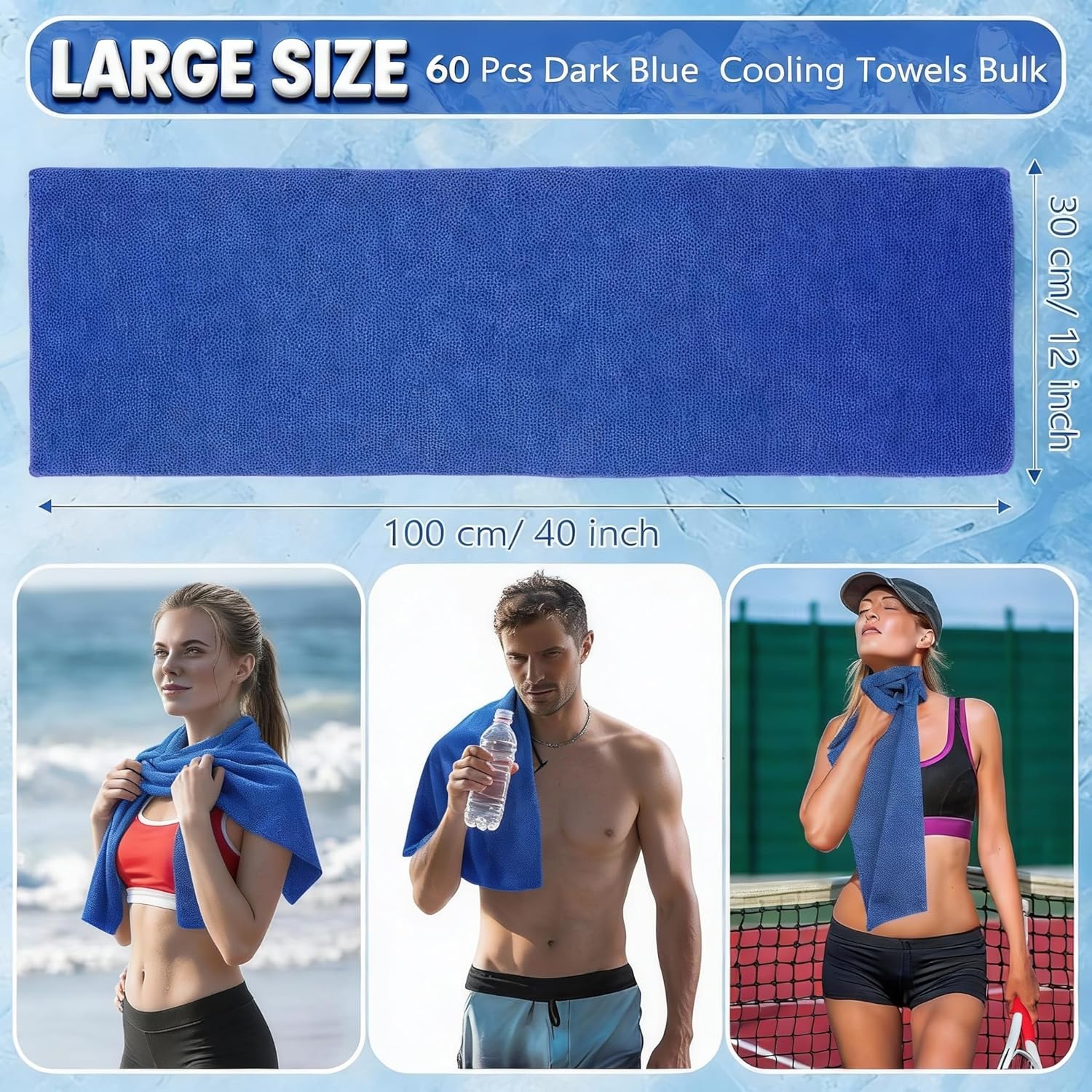 Features: Thoughtful gifts: These cooling towels for neck and face are appreciated by many people, so you can send them as gifts to your family, relatives, colleagues and other people who need them to show your thoughtfulness and concerns. Detailed dimensions: The cooling towels for hot weather are about 40 x 12 inches/ 100 x 30 cm, about 2.6 lb/ 1.2 kg in weight, proper size to meet your needs. Cute Towels:Cooling towels,cooling towels for neck and face,cooling towels bulk,cooling towel,cooling towel bulk,cooling rags,cooling towels for neck and face bulk,bulk cooling towels,cooling towels for hot weather,cool towels,cooling rags for neck,cold towels for hot weather,cooling towels for sports.Specifications: Main material: polyester Color: as shownSize: about 40 x 12 inches/ 100 x 30 cmWeight: about 5.2 lb/ 2.4 kgPackage includes: 60 x Cooling towelsNotes: Manual measurement, please allow slight errors on size. The color may exist a slight difference due to different screen displays.