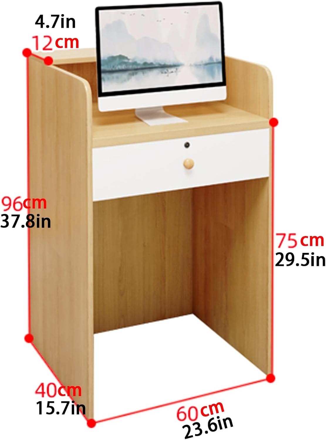 Large reception table with light is perfect for your office.This YUGXTH reception desk counter provides additional storage space, also suitable for your multiple storage and display needs. Reception counter desk also the top shield boards and lockable drawer can protect your privacy.Specifications:Product name: Small reception deskMaterial: WoodColor: Original wood colorStyle: Modern and simpleLength: 60cm/23.6in, 80cm/31.5inWidth: 40cm/15.7inHeight: 96cm/37.8inApplicable scenarios: Clothing stores, beauty salons, etc.Package Includes:1 x Cashier Counter.Attention.1. Due to monitor differences, there may be slight color difference.2. Due to the measurement method, measurement method and other factors, there may be a slight error.