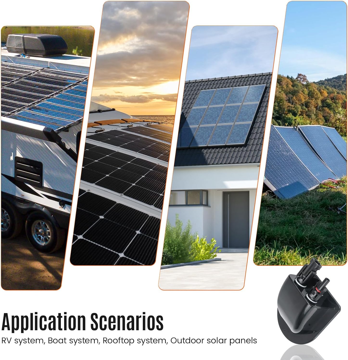 • Flexible Customization: Choose from 5 cable lengths (0.5FT, 3FT, 5FT, 10FT, 20FT) to match your installation needs, eliminating excess wiring or the hassle of splicing extensions. Available in sleek black or white to seamlessly blend with your solar panels, RV, boat, or rooftop design