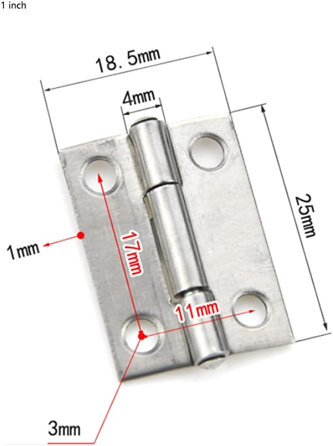 HingesGOOFFYMaterial: Anti-rust, anti-corrosion, strong properties.Name: 304 stainless steel hinge.Material: SUS-304 stainless steel; surface: stainless steel wire drawing.Specifications: 1 inch / 1 inch wide version / 1.5 inch / 2 inch / 2.5 inch / 3 inch.Product use: wooden box/wood cabinet/wood window/furniture, etc.Packing contains: 12 pcs/set ; 1 inch 2 pcs / 1 inch wide version 2 pcs / 1.5 inch 2 pcs / 2 inch 2 pcs / 2.5 inch 2 pcs / 3 inch 2 pcsnotes:1. Since manual measurement is required, please leave a space of 1-3 cm.2. Due to screen differences, the color may be slightly different from your expected color, please allow.