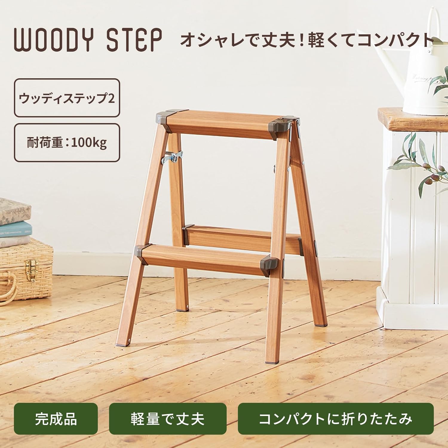 The wood grain pattern makes this stepladder a stylish addition to any room. Made of aluminum and lightweight for easy carrying, and can be stored compactly when not in use. Non-slip feet prevent rattling during use.