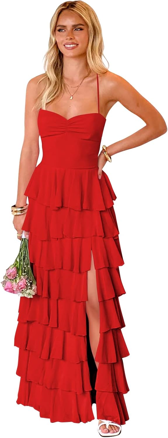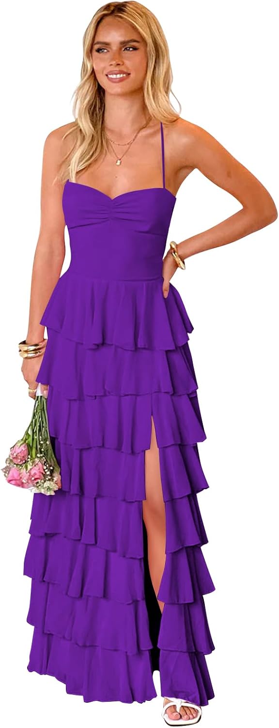 Fabric:Chiffon Neckline: Sweetheart Silhouette: A Line/Tiered Ruffle Feature: Sweetheart,Sleeveless,Tiered Ruffled,Spaghetti Strap,A Line,Floor Length,Chiffon,Split,Long/Maxi Back: back strap If you want to custom the long bridesmaid dresses, please complete the format when you place the order. 1. Full Bust _____ cm 2. Waist _____ cm 3. Hips _____ cm 4. Hollow to hem ___ cm 5. Natural height:_____cm 6. High Heels_____cm 7. Phone Number______ 8. The date you need the dress_____ For the urgent order,please email us by amazon before placing order to ensure you can get it on time.