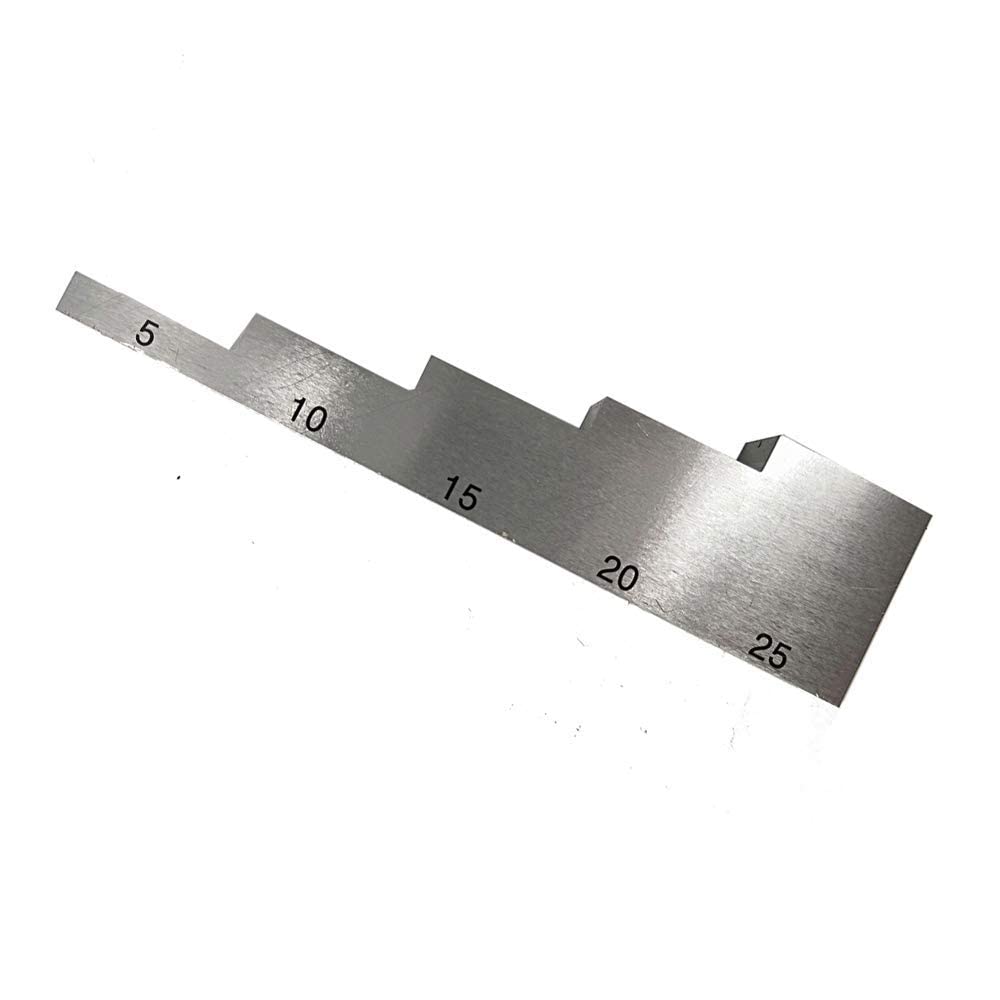 Introduction ▲5 Step Calibration Block for Ultrasonic Thickness Gauge Technical Specifications ▲ Material: 1018 Steel ▲ Thickness:5mm 10mm 15mm 20mm 25mm ▲ Length*Width:100 x 20mm ▲ Package with 1 pieces of 5 Step 5mm 10mm 15mm 20mm 25mm Ultrasonic Step Test Block