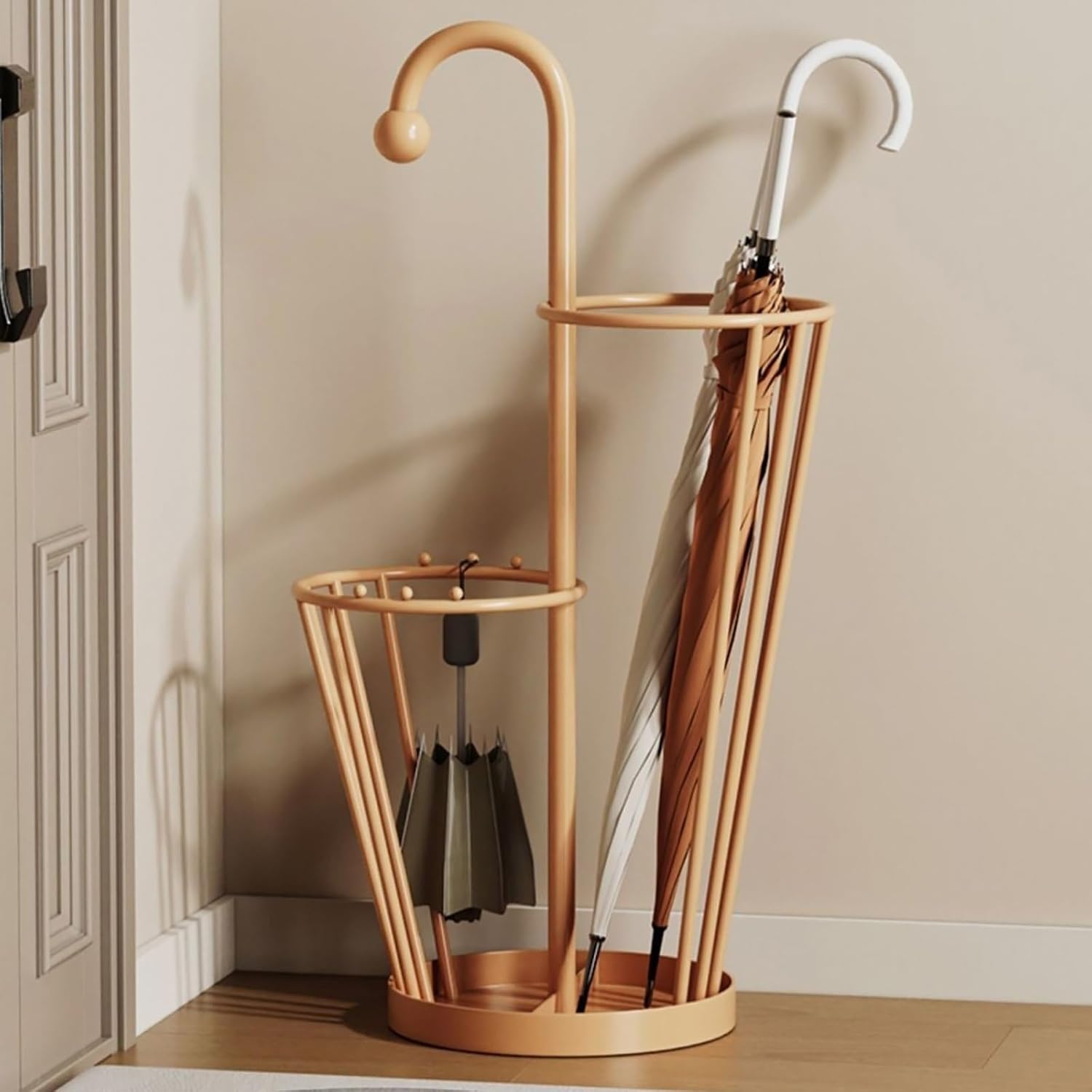 Introducing our versatile umbrella holder, designed to bring order and style to your entryway. With its unique dual-compartment structure, this umbrella organizer allows you to store multiple umbrellas of varying sizes without the hassle of them tangling or rubbing against each other. Its flexible design ensures that you can easily access your umbrellas when you need them most, making it an ideal solution for busy households or offices. Crafted from durable plastic, our umbrella stand is not only functional but also complements your home decor with its vibrant color options of orange and beige. Measuring 25 x 25 x 70 cm (9.8 x 9.8 x 27.6 inches), it fits perfectly in any corner, ensuring your umbrellas are neatly stored away, yet readily available. Whether you're looking to keep your entryway tidy on rainy days or simply want a stylish accent for your home, our umbrella holder is the perfect addition. It helps you maintain an organized space while adding a touch of flair to your decor. Please note that due to manual measurement, slight variations may occur. The actual product may differ slightly in color from the images shown, depending on lighting and display settings. Embrace practicality and style with our umbrella holder, and say goodbye to clutter in your home.