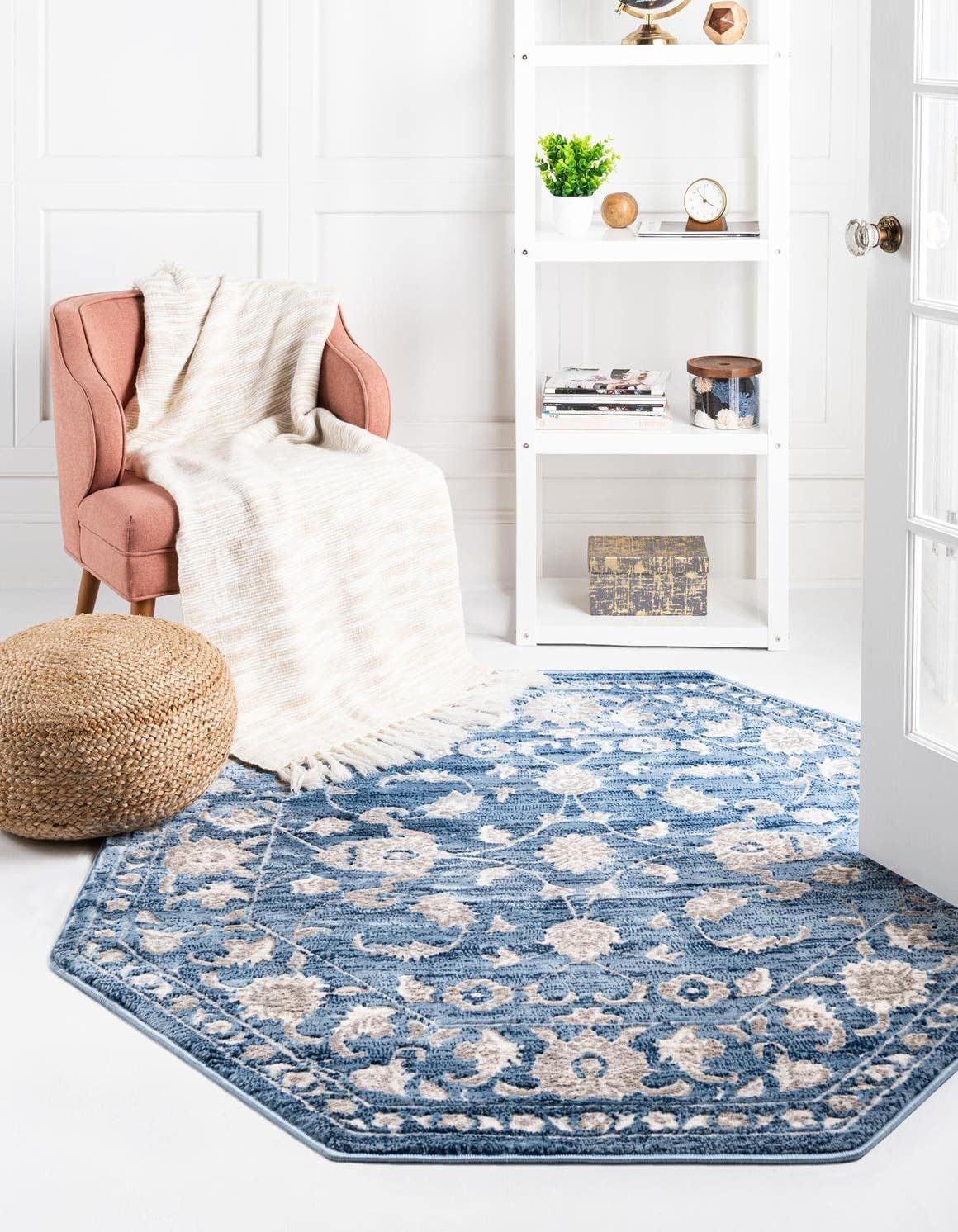 Bring home sophisticated style. With calm neutral colors and traditional floral patterns, the Boston Collection creates a subdued atmosphere in any room it's in. Tribal medallions and all-over botanical designs are framed by stately borders for an up-scale look. Cool blues and warm grays and ivories give these rugs a soothing touch. The medium-height 1/3" synthetic blend pile is soft underfoot and easy to clean, making it perfect for medium to low traffic areas that need a little more stately style like living rooms, bedrooms, or offices.