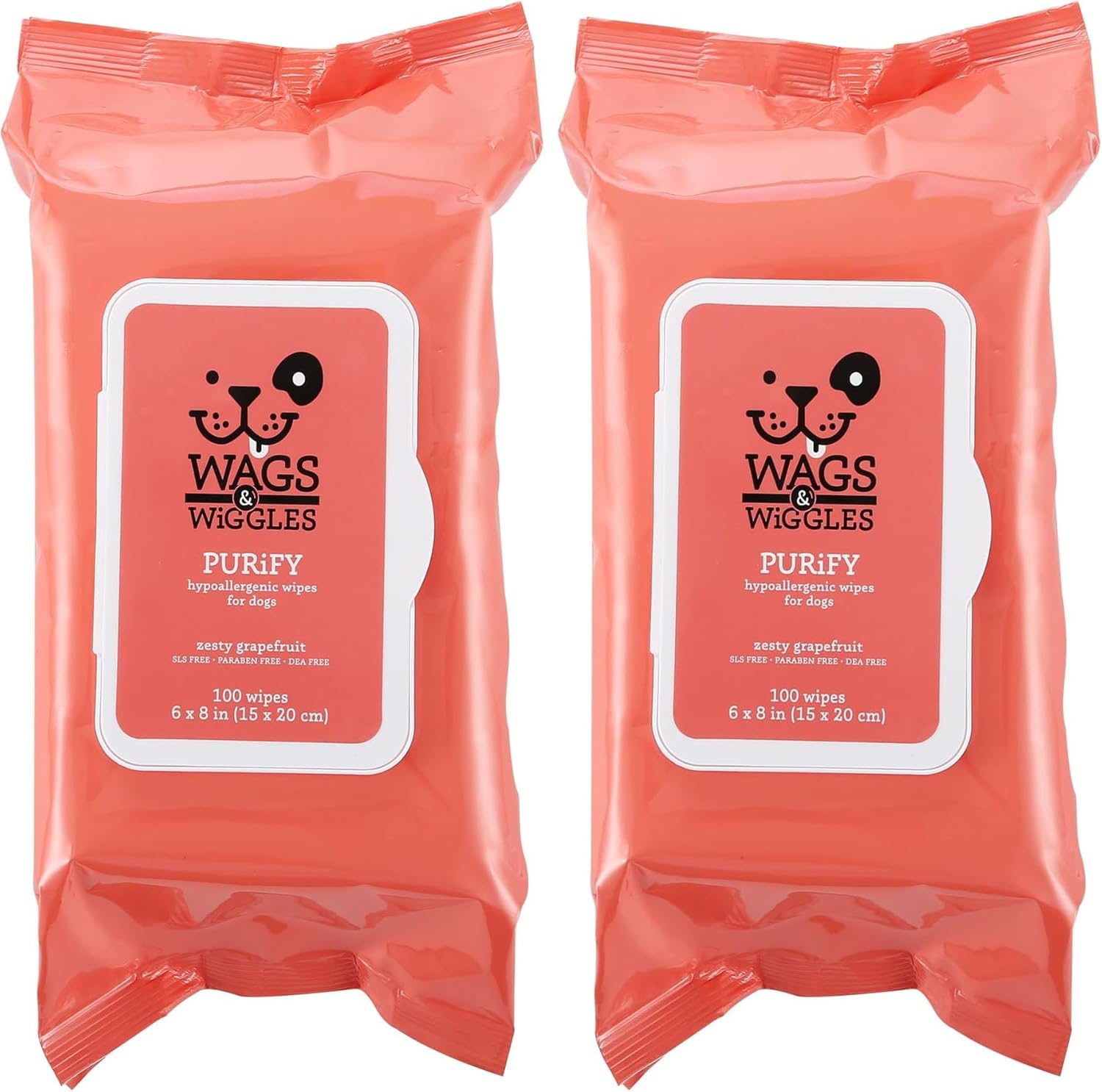 Wags & Wiggles Purify Hypoallergenic Dog Wipes are designed to gently clean dogs with sensitive skin between baths. These wipes are suitable for paws, body, and coat, making everyday grooming simple and convenient. Made with a gentle, plant-based formula, these dog wipes help remove dirt and odors without harsh ingredients. The light Zesty Grapefruit scent leaves dogs smelling fresh while remaining suitable for routine use. With a 100 count pack, these hypoallergenic dog wipes are ideal for daily grooming at home or on the go. They provide a practical solution for maintaining dog cleanliness as part of regular care routines.